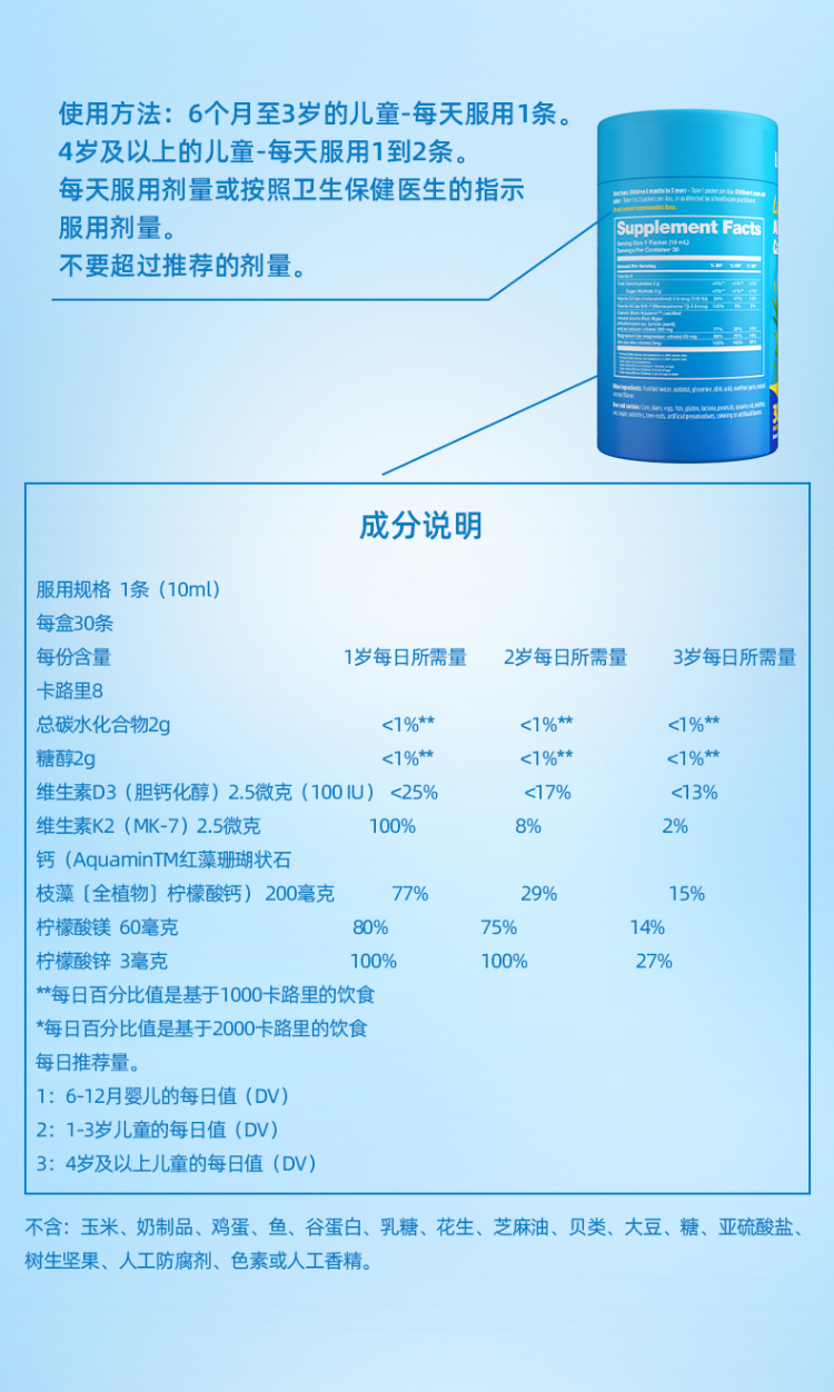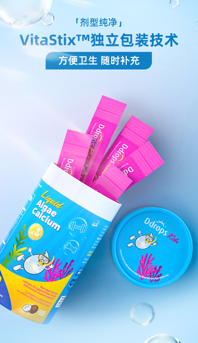 【知敏】 Ddrops kids 儿童液体海藻钙镁锌 30条/罐