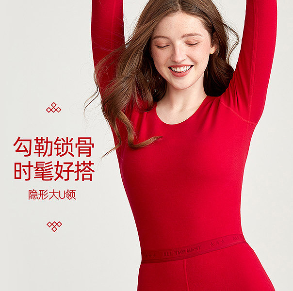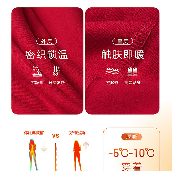 好奇蜜斯红德绒保暖内衣女本命年秋衣秋裤套装打底加厚发热25秋冬-伊莉雅