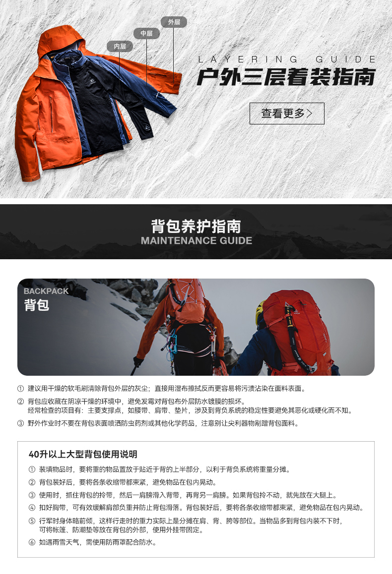 - 致力于推动登山及探险运动发展,为运动员及专业爱好者提供高性能的户外装备。