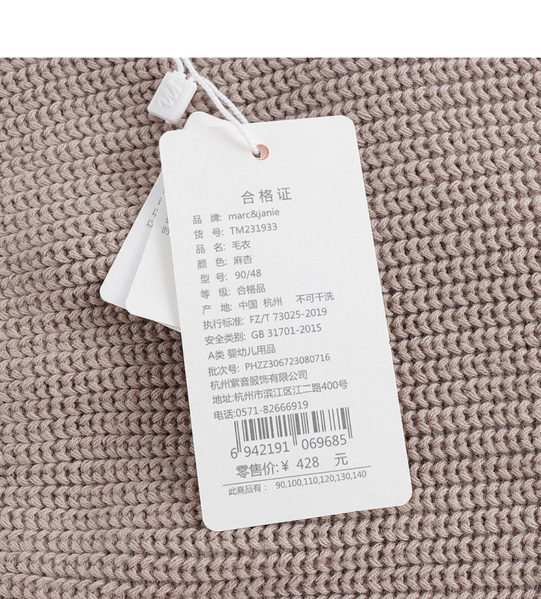 【城市户外】马克珍妮冬装新款 男童圆领扭花针织衫毛衣231933