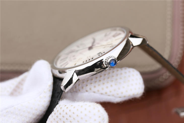 ZF卡地亚 Cartier(伦敦系列)W670101 经典款。正品原装开模,釆用9015机芯。SOLO系列腕表完美保留其经典的优雅与卡地亚特征。罗马数字时标,剑形蓝钢指针,镶嵌凸圆形蓝宝石表与钟轨的完美结合!实为正装场合优雅气质的体现!
