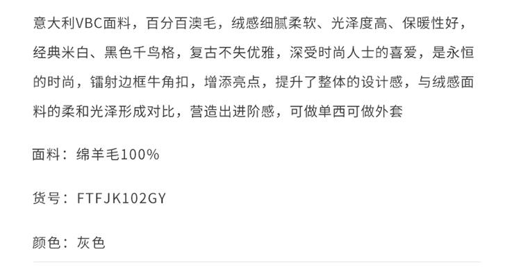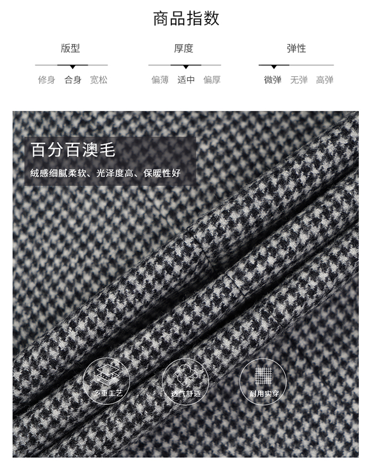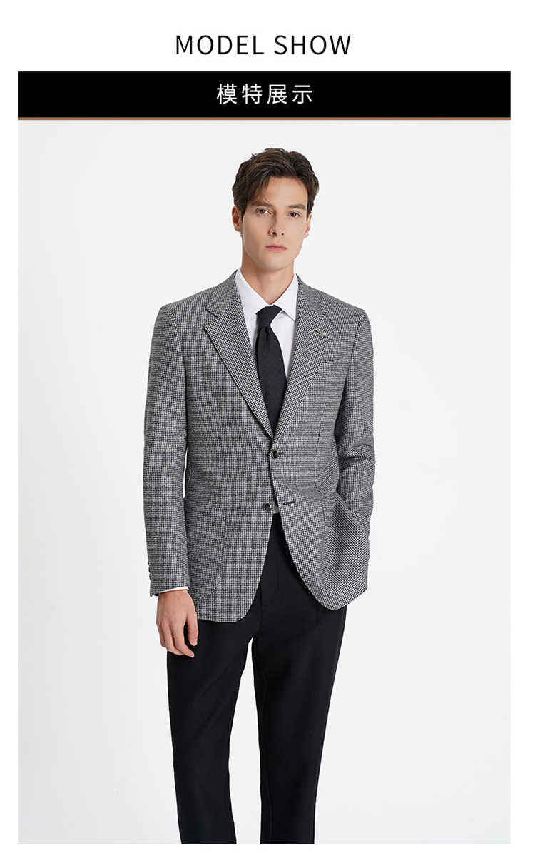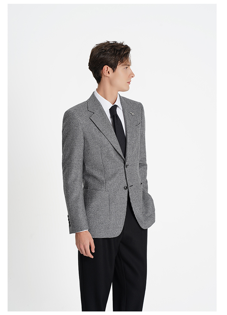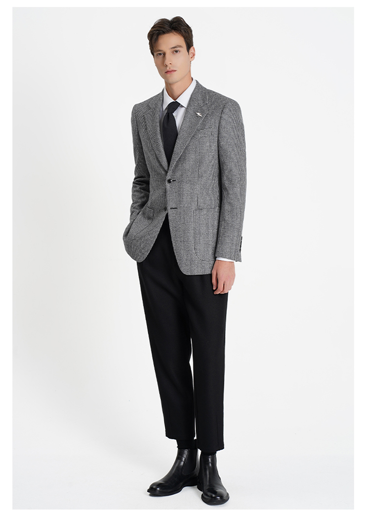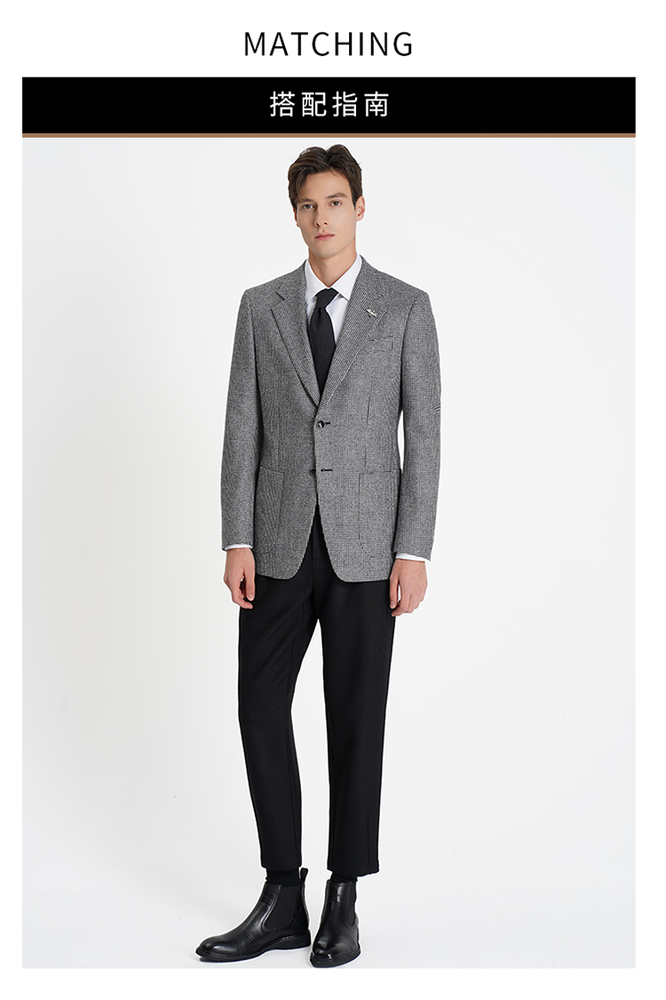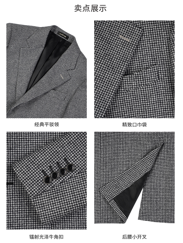 callisto高智系列山影灰千鸟格绵羊毛西裤