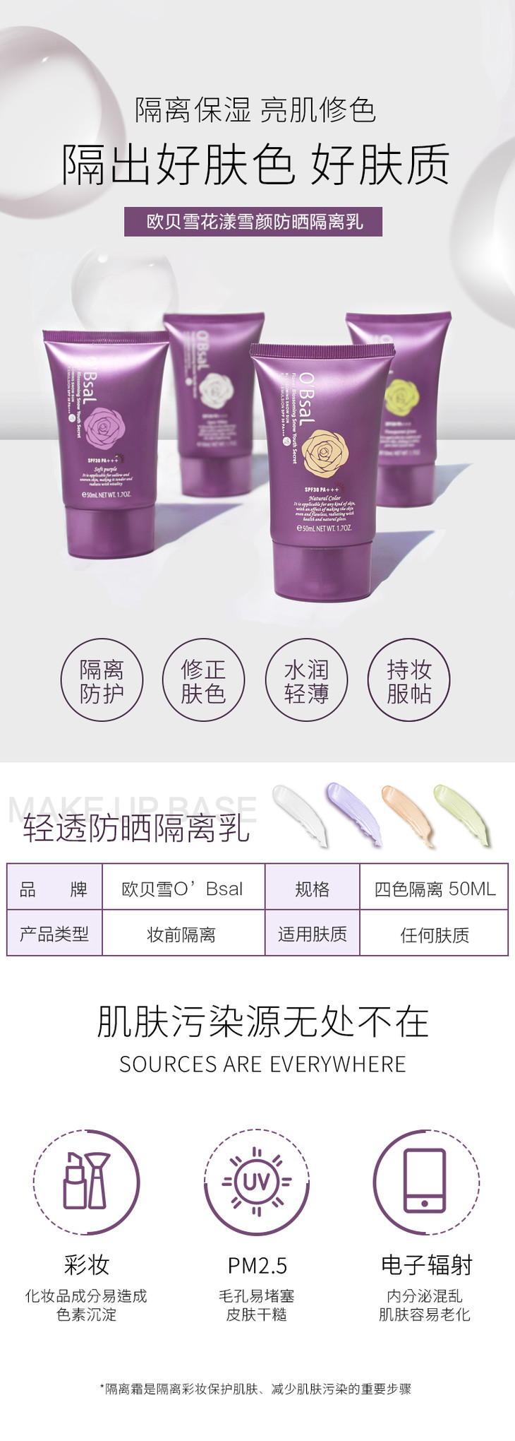 【妆前必选 水润透亮】台湾 欧贝雪O’Bsal 花漾雪颜防晒隔离乳