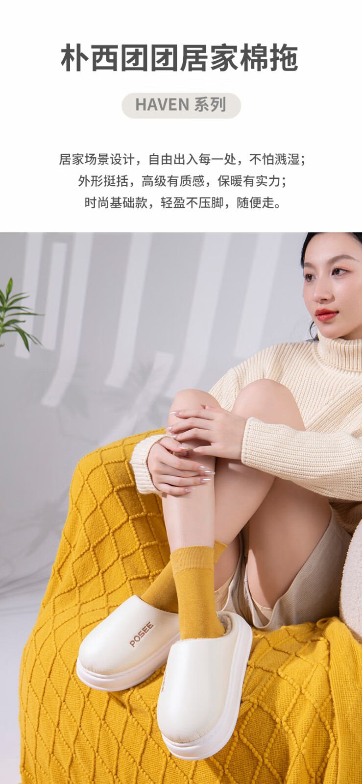 朴西posee防水居家团团棉鞋