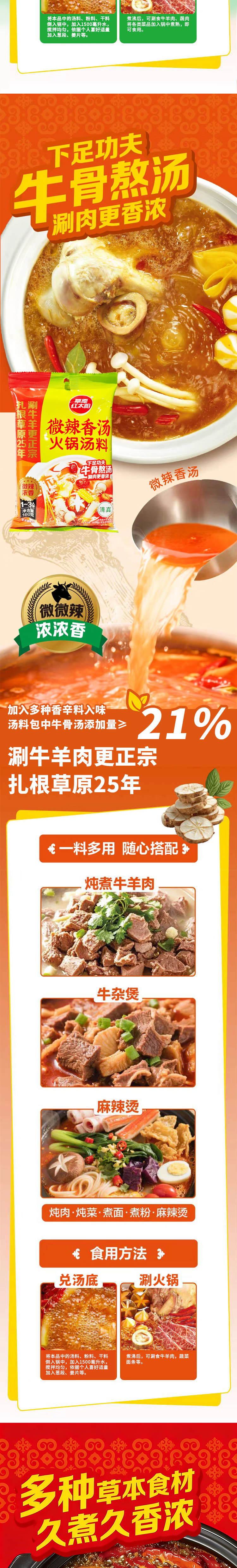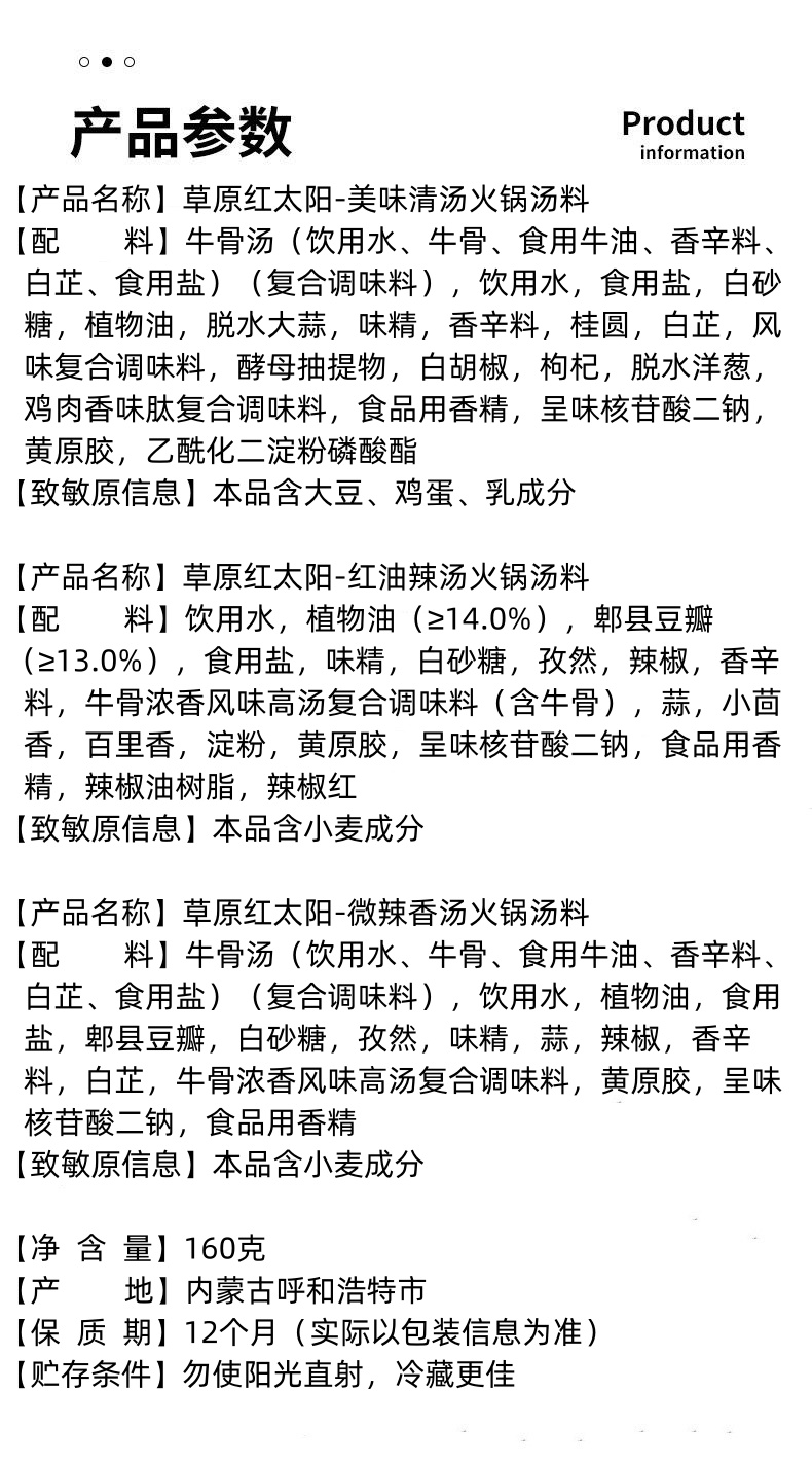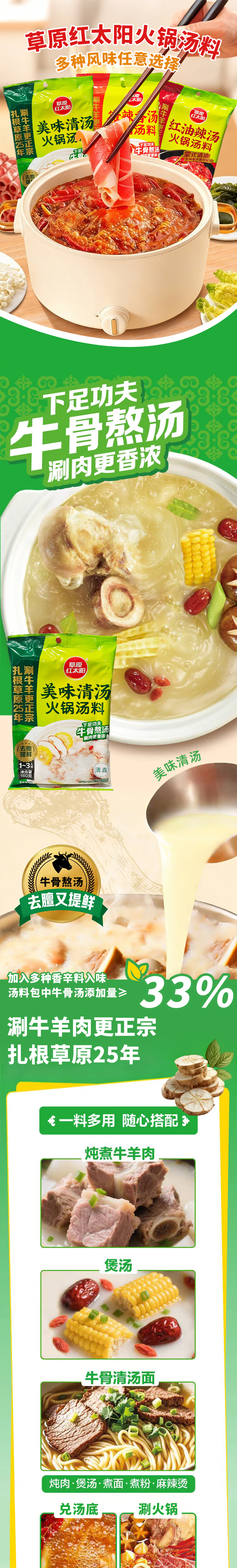 草原红太阳-美味清汤丨红油辣汤丨微辣香汤火锅汤料160g(新老包装随机发)