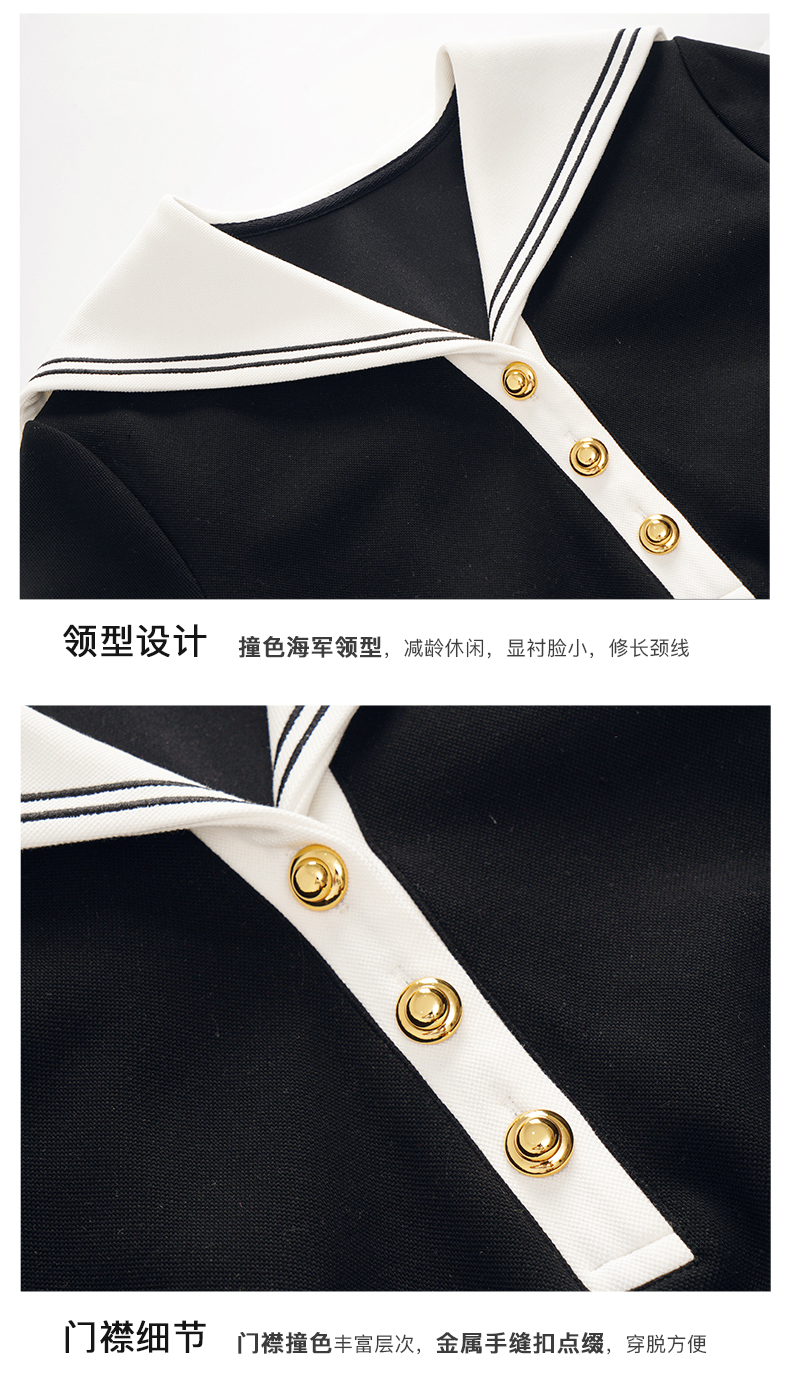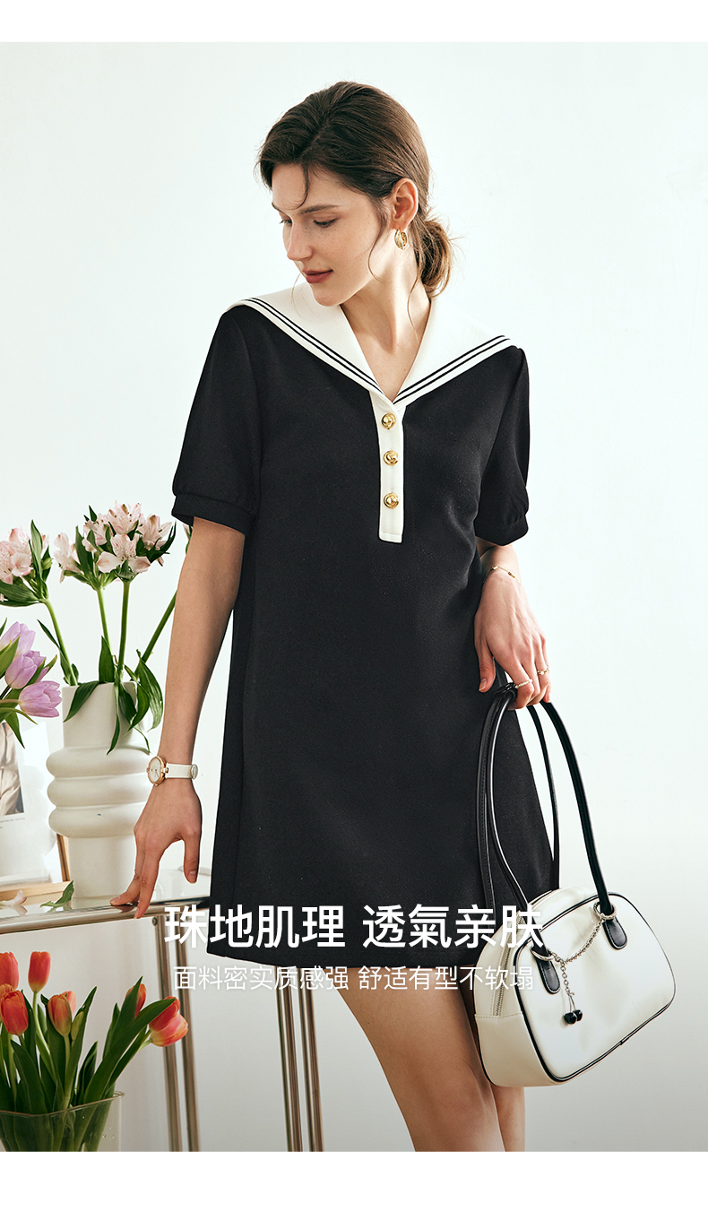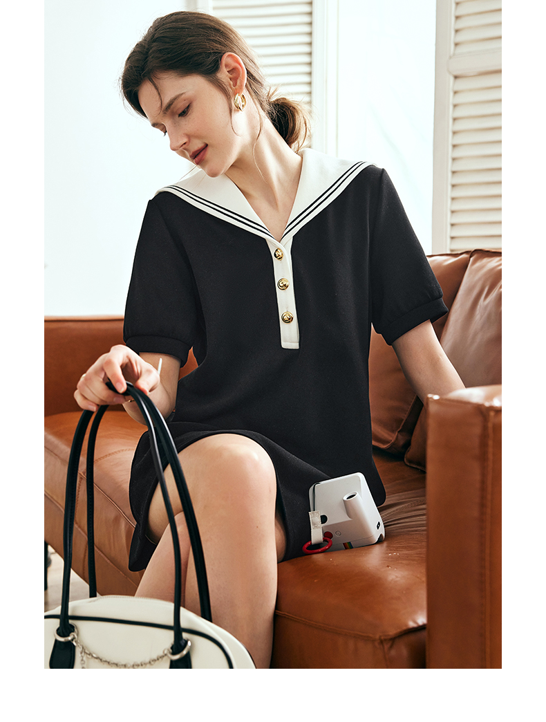 OLrain欧芮儿法式海军领连衣裙女夏季2023新款宽松黑色减龄卫衣裙