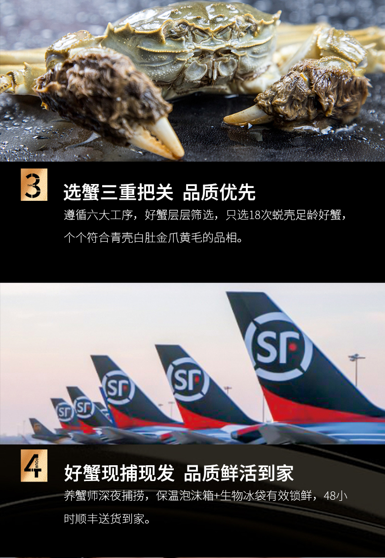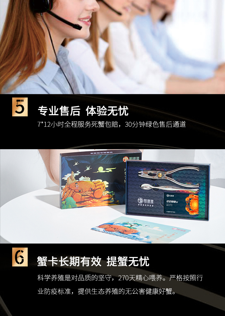 【顺丰直发】阳澄澄大闸蟹提货卡 2288型 雄蟹4.5两4只 雌蟹3.0两4只 共8只