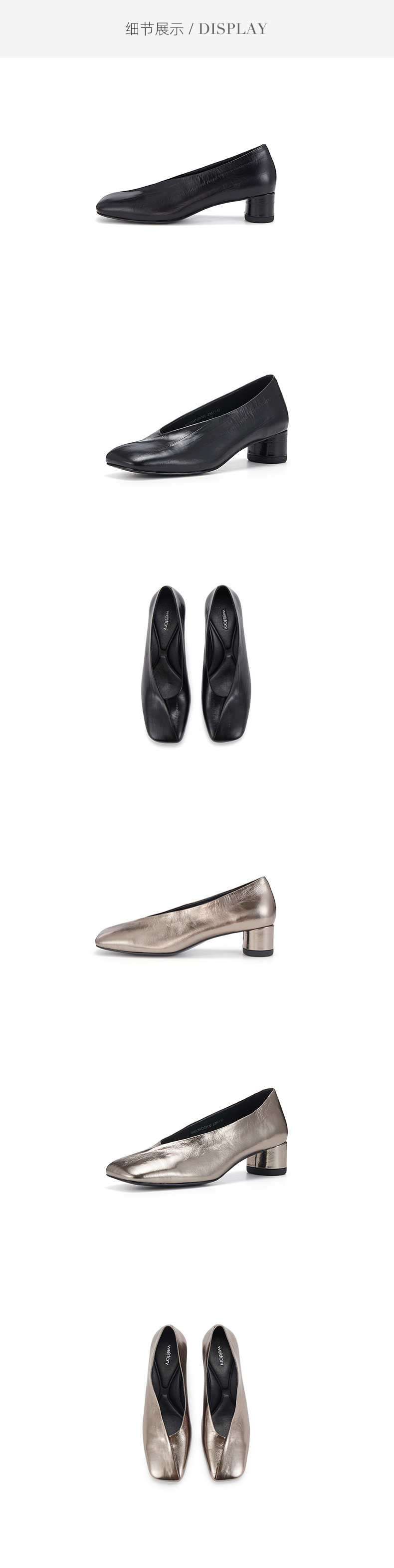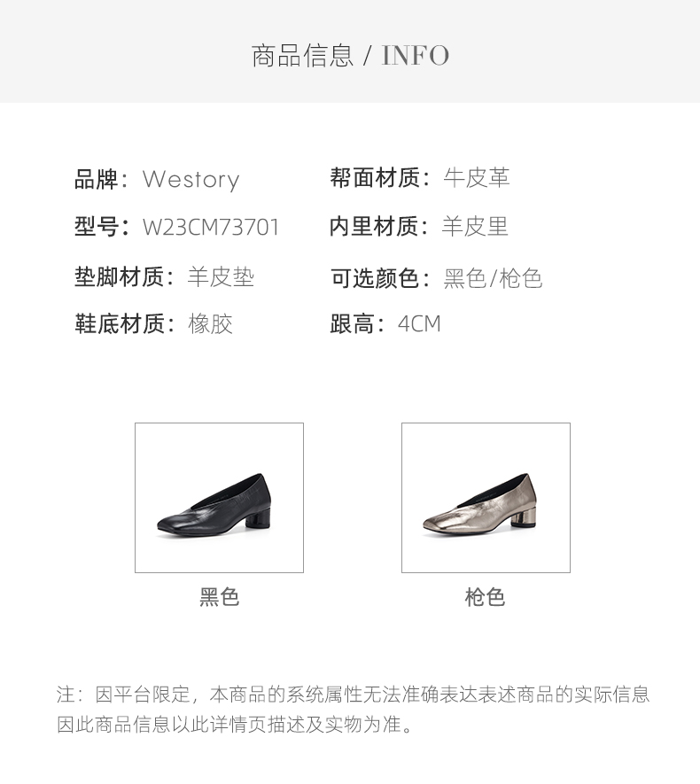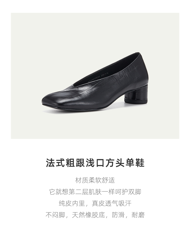 westory春秋法式粗跟浅口方头单鞋小众复古时尚女鞋W23CM73701