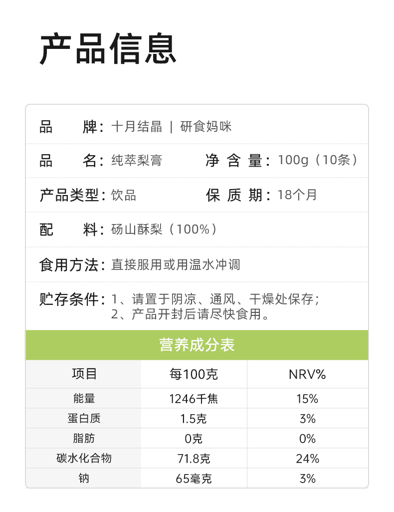研食妈咪纯萃梨膏无添加孕妇孕期泡水喝润喉100%砀山酥梨