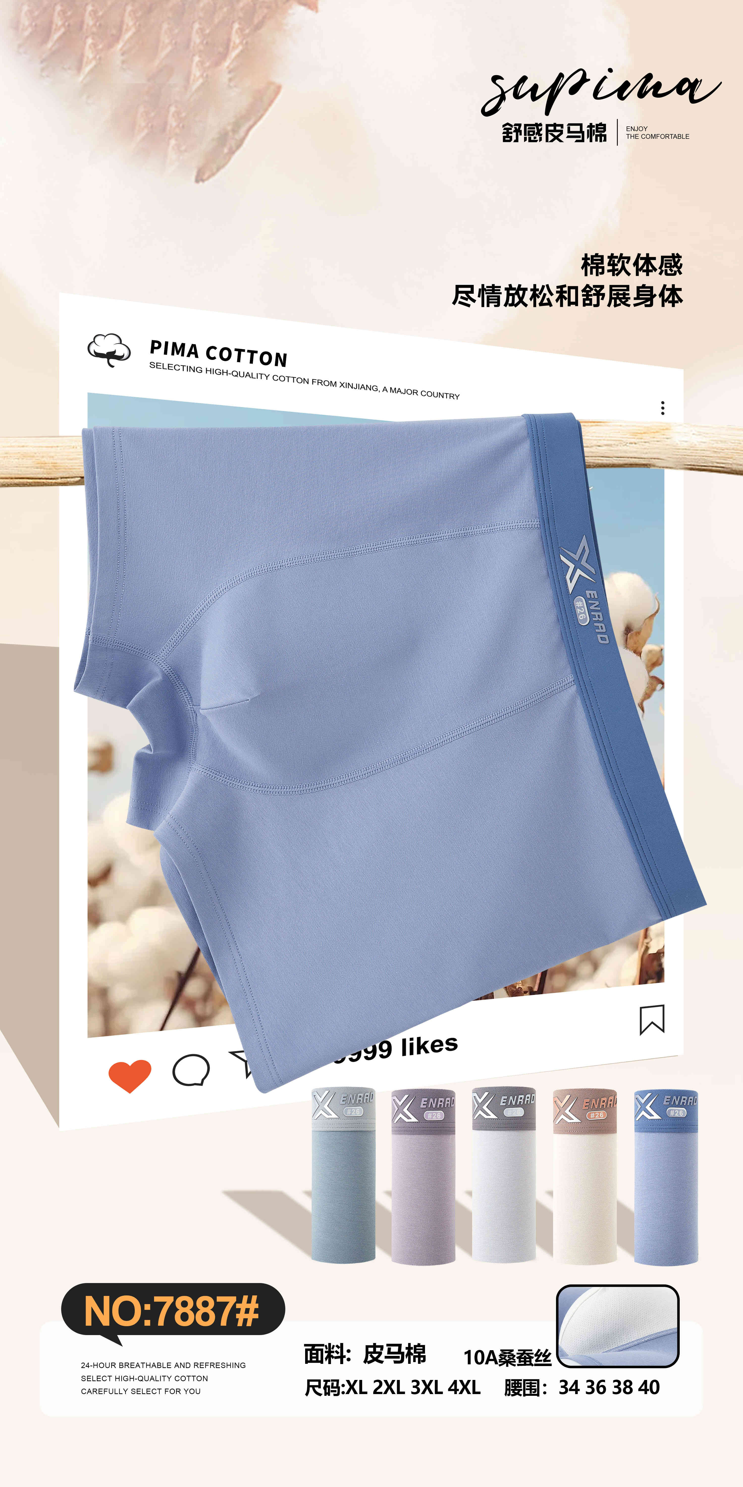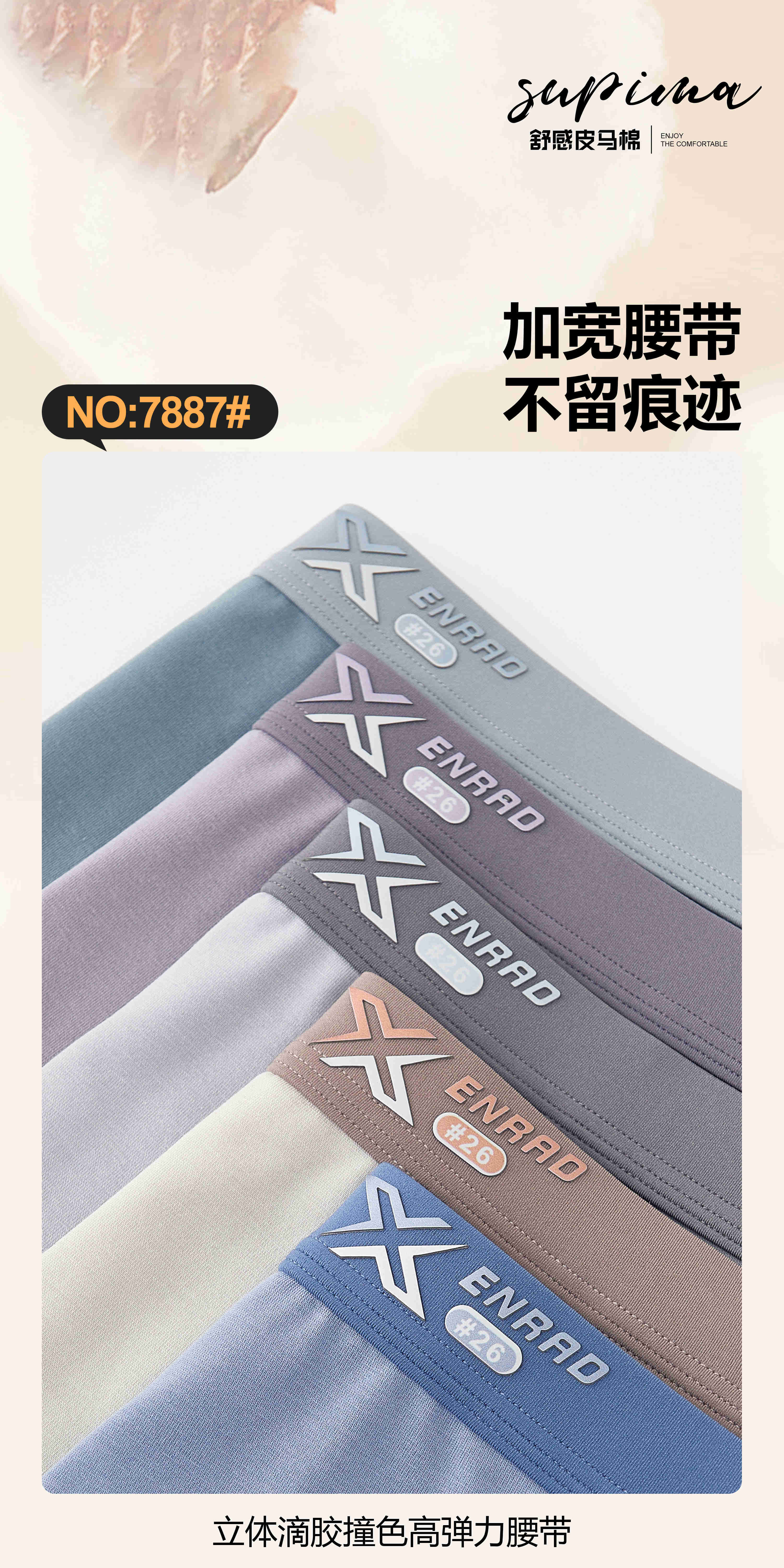 男士皮马棉10A桑蚕丝底裆撞色包头平角内裤四角裤7887