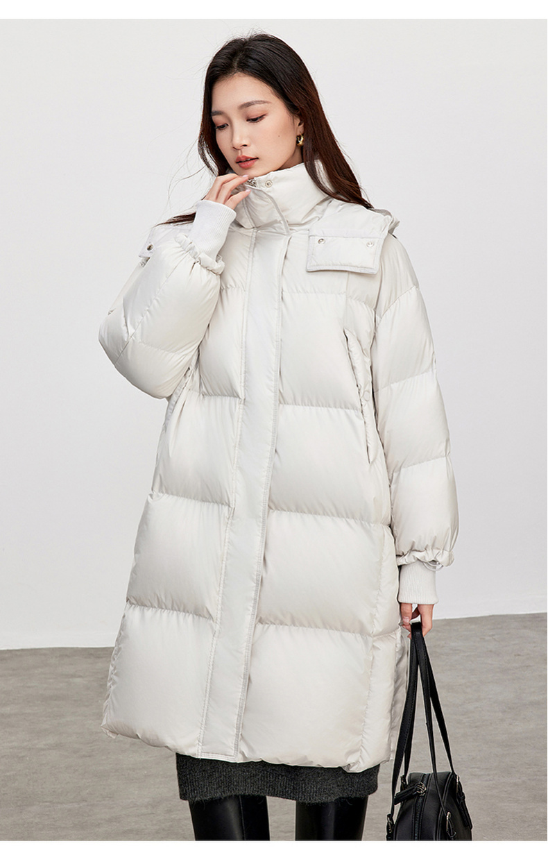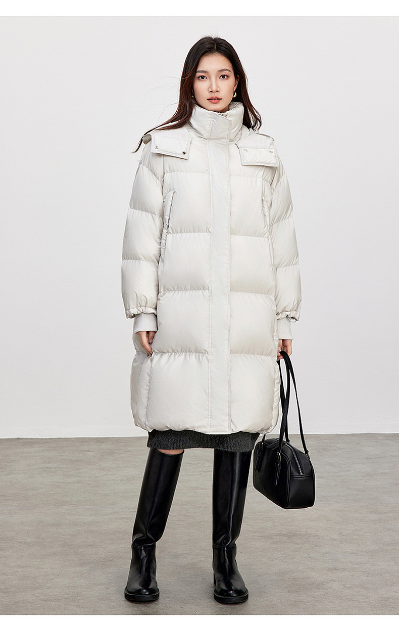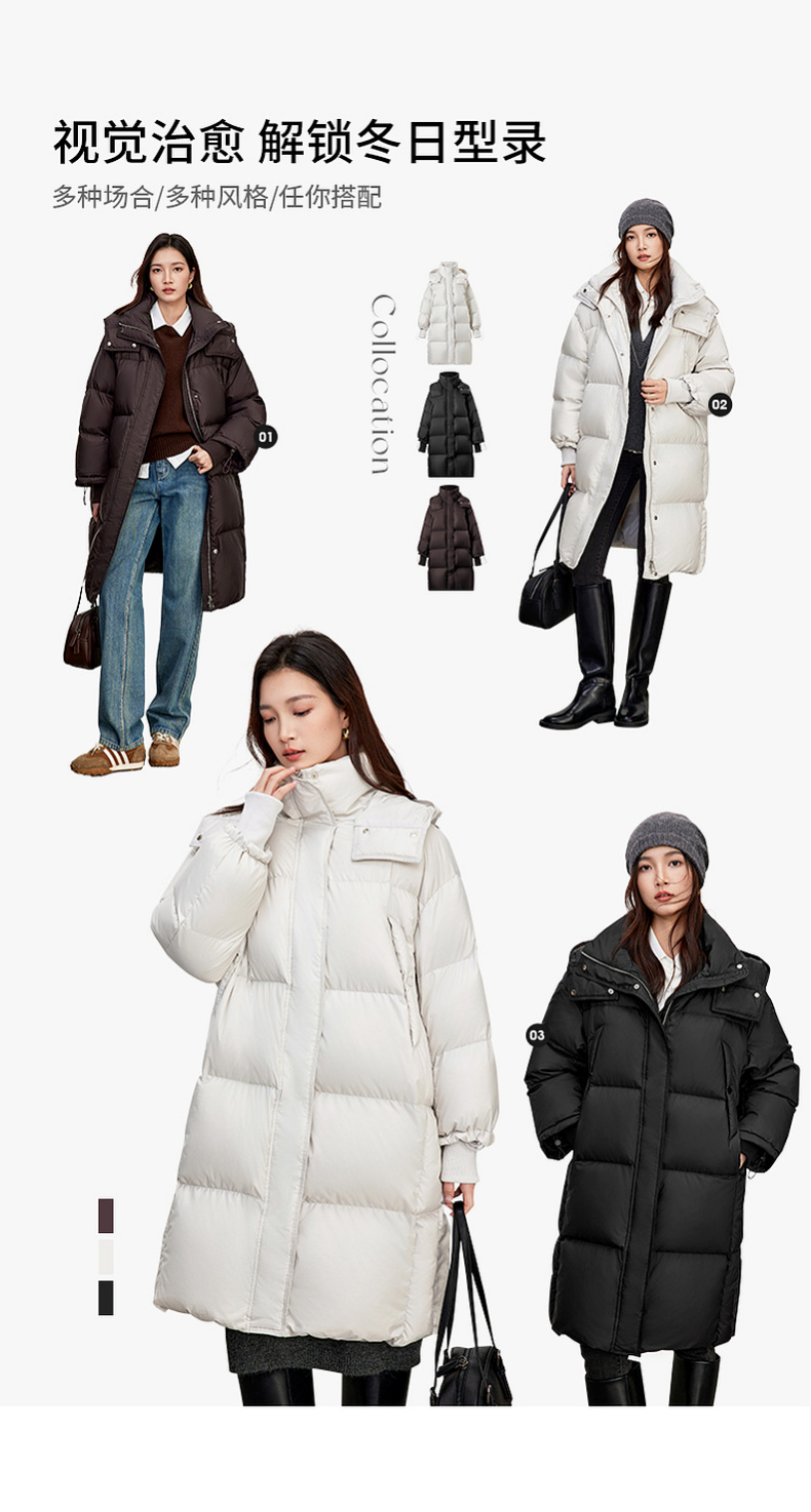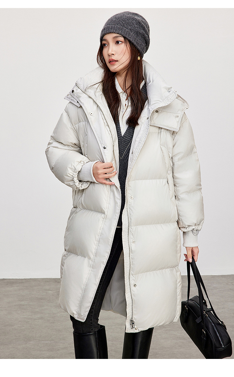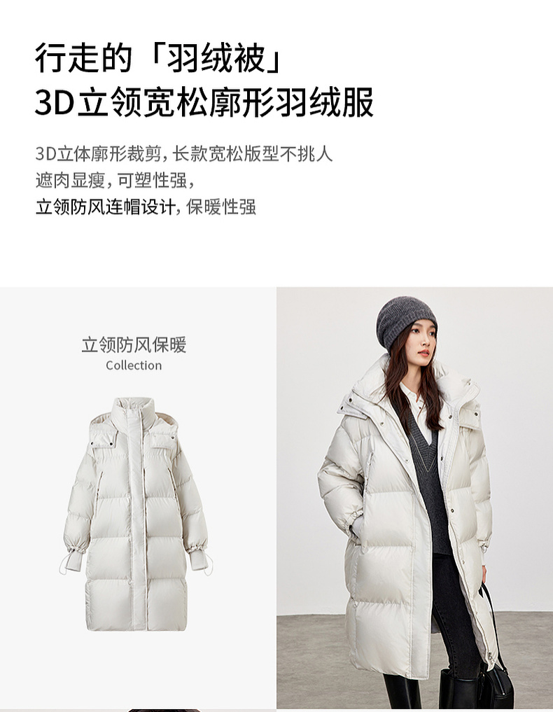 【内购】冬季长款白鸭绒加厚保暖宽松廓形外套拼接立领防风保暖羽绒服-W44Y80022