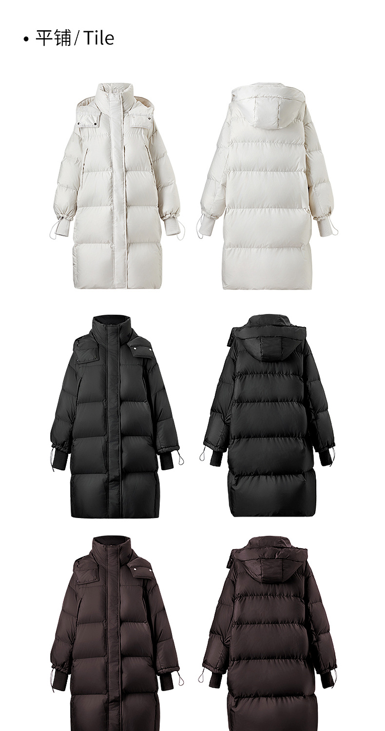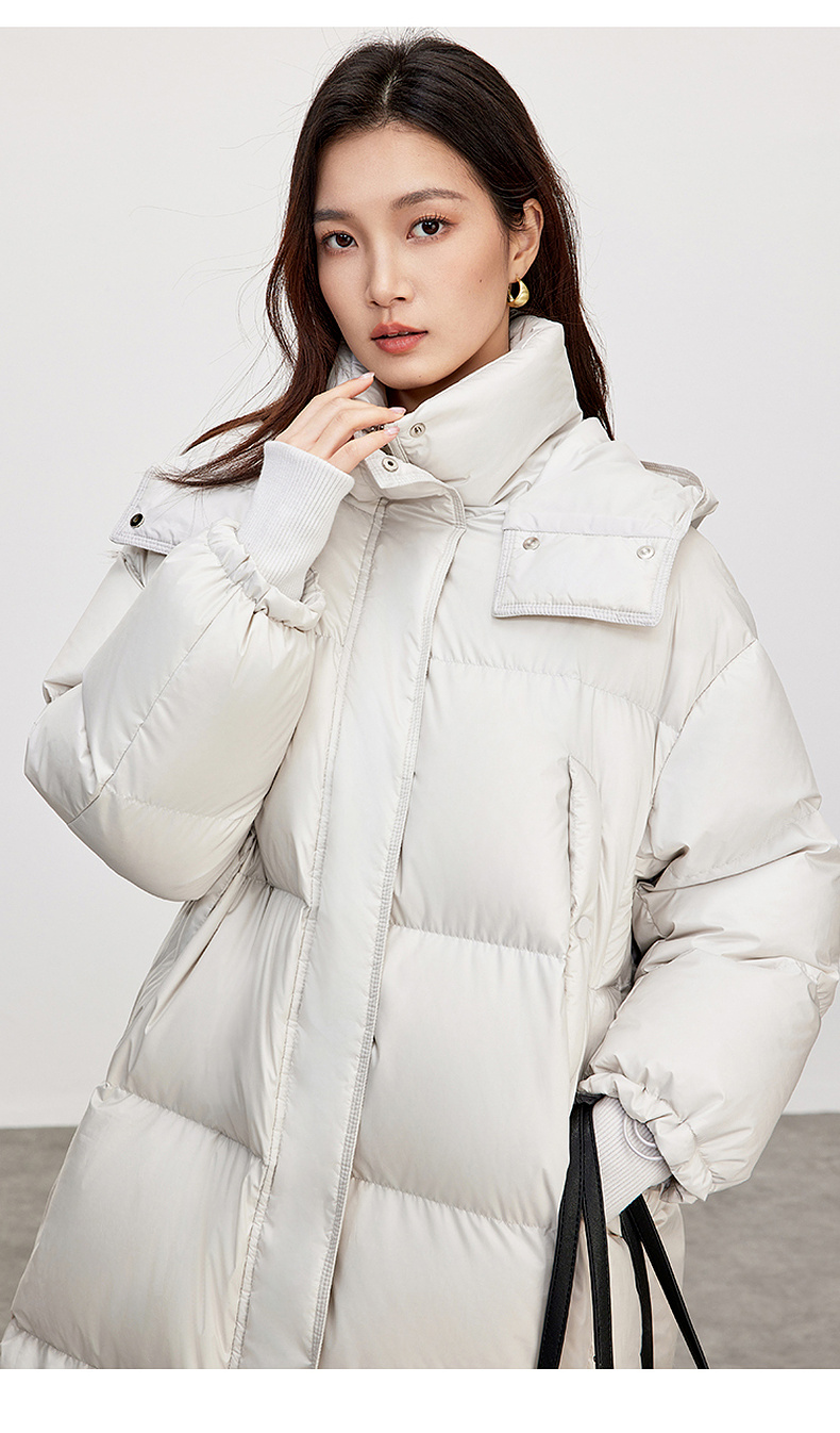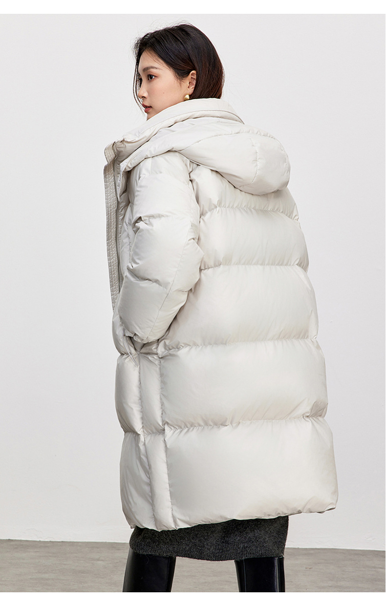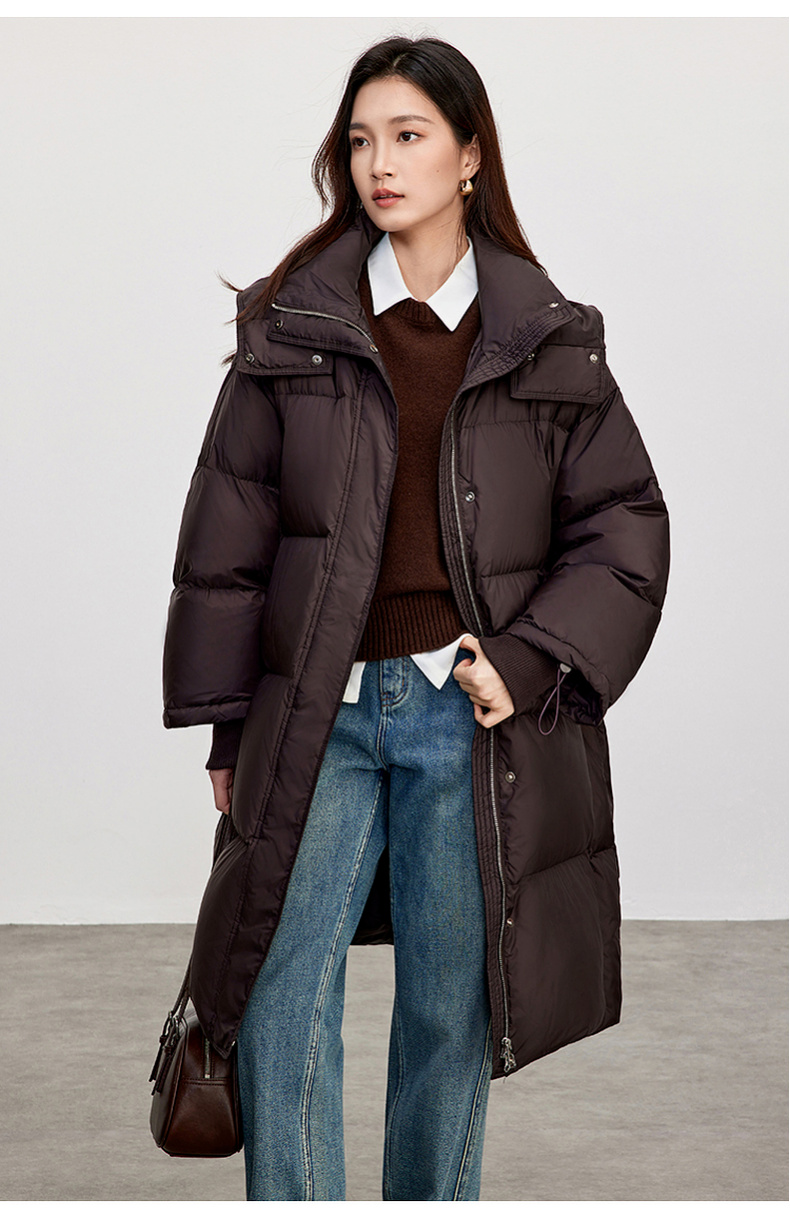 【内购】冬季长款白鸭绒加厚保暖宽松廓形外套拼接立领防风保暖羽绒服-W44Y80022