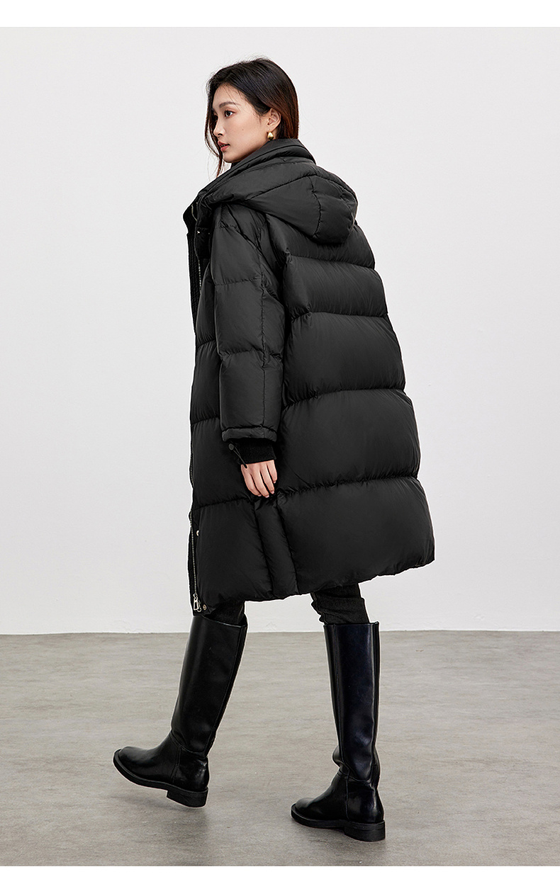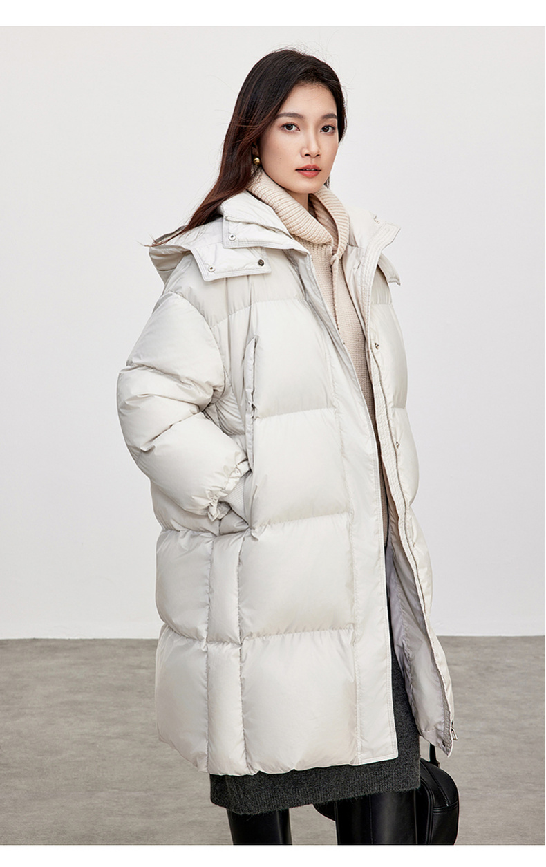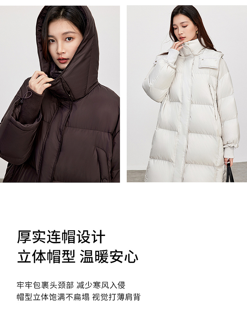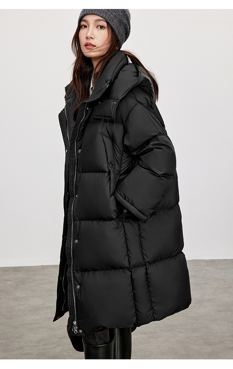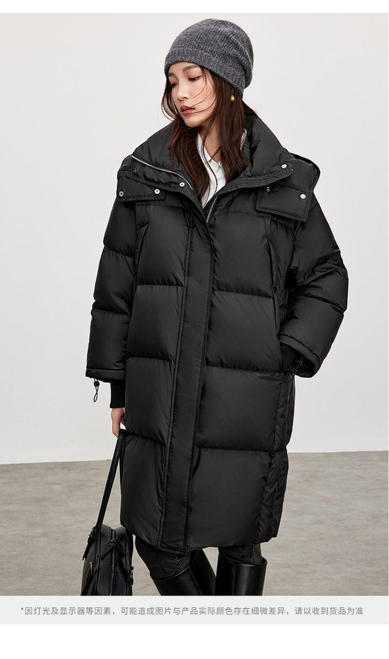 【内购】冬季长款白鸭绒加厚保暖宽松廓形外套拼接立领防风保暖羽绒服-W44Y80022