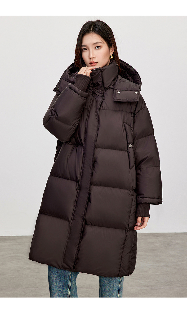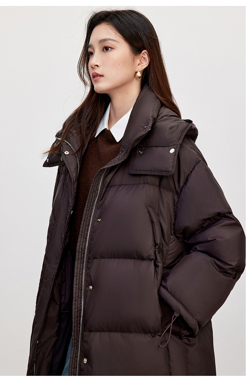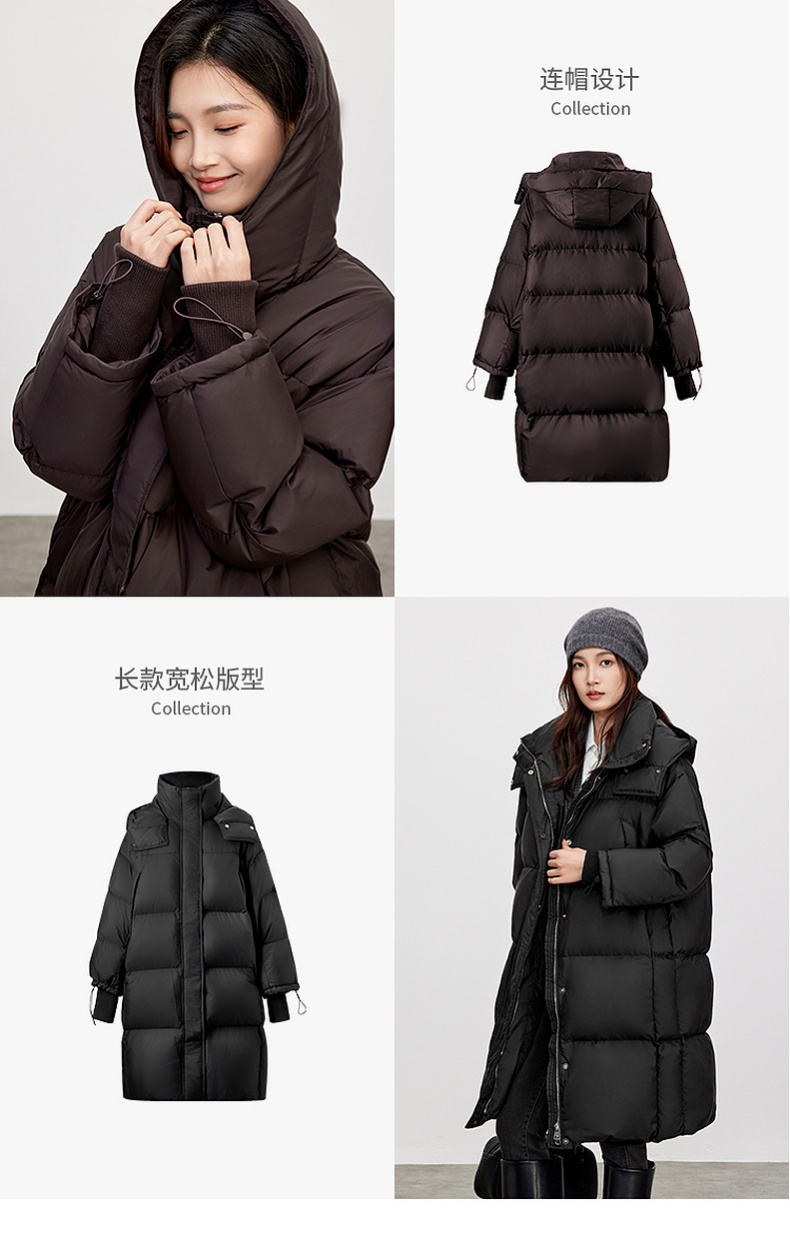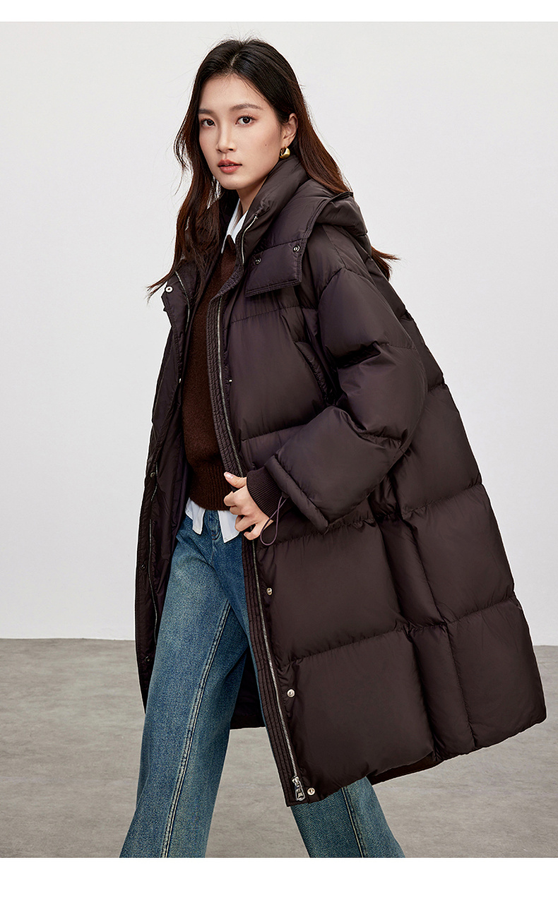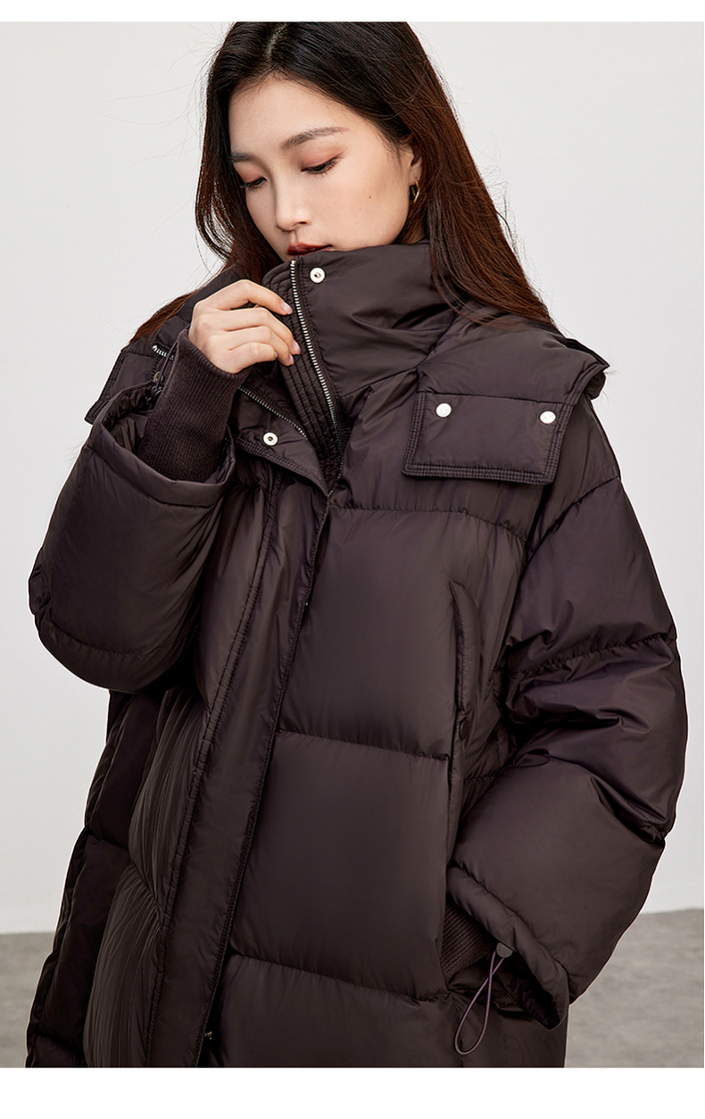 【内购】冬季长款白鸭绒加厚保暖宽松廓形外套拼接立领防风保暖羽绒服-W44Y80022