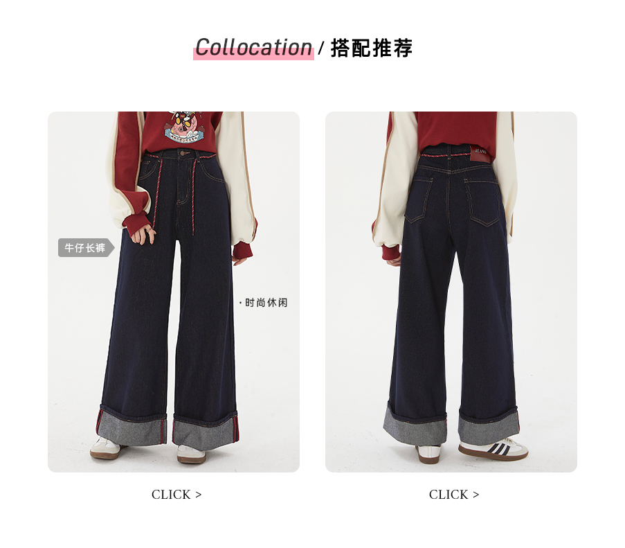 P&X设计师女装 时尚街头水洗牛仔长裤宽松阔腿裤825110051 黑色