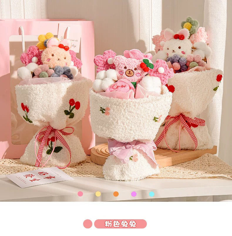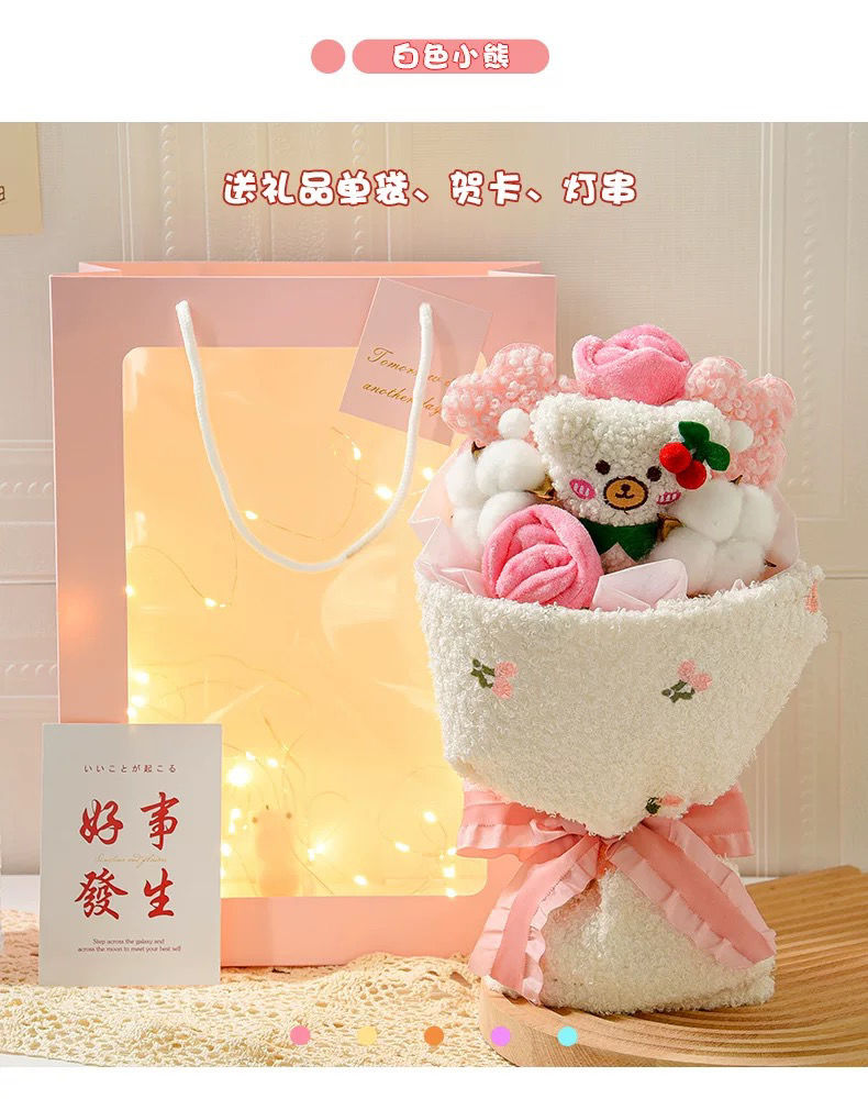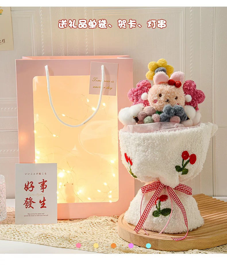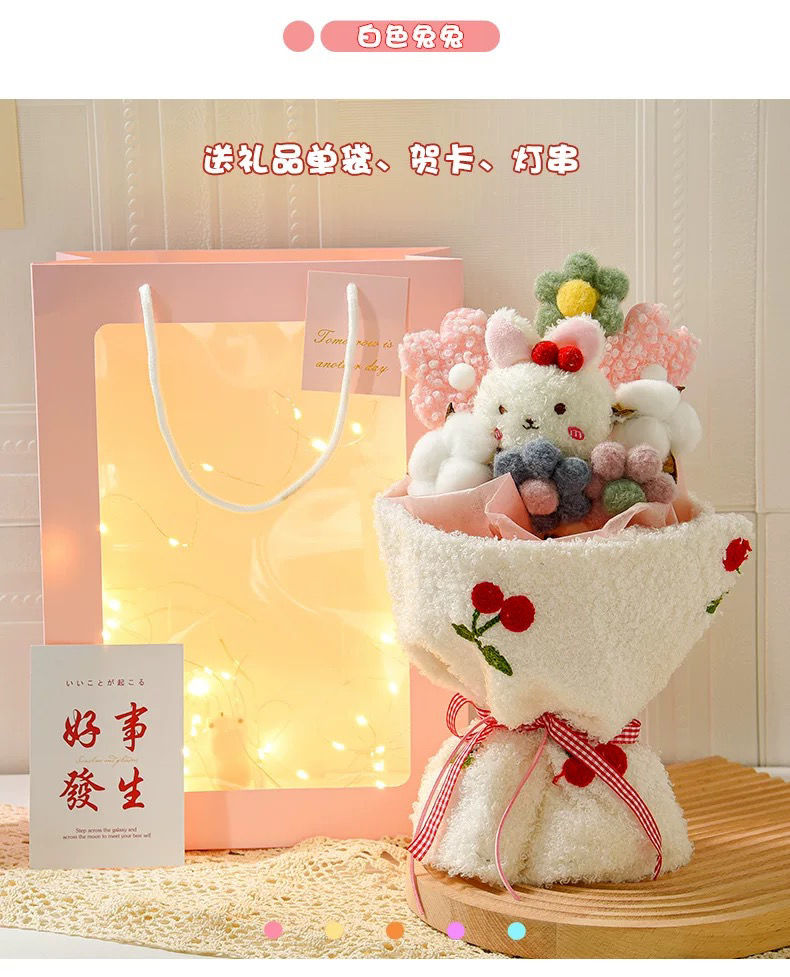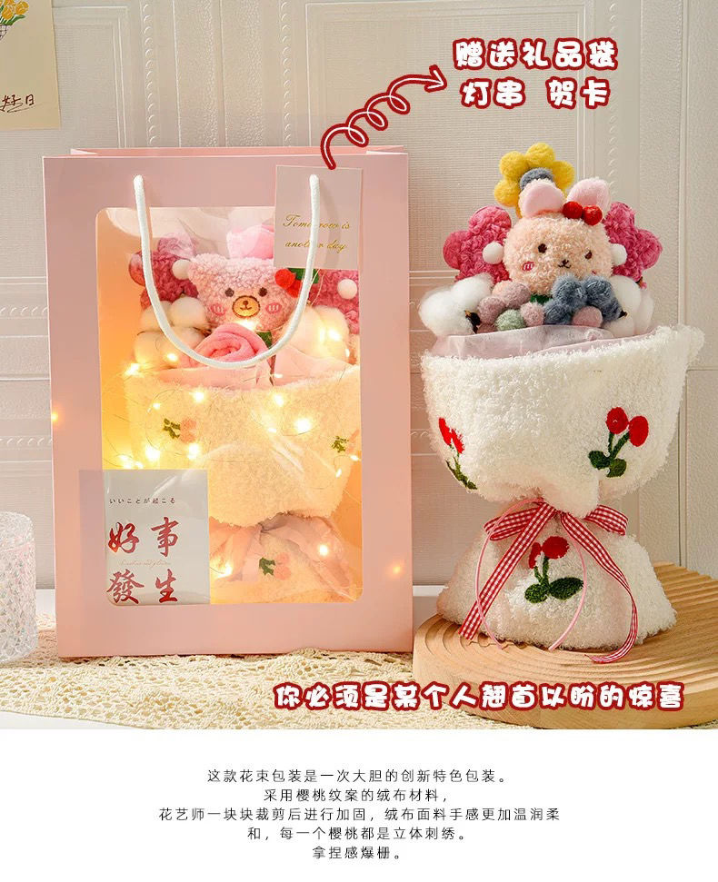 【赠礼袋+灯串+贺卡】七夕礼物玩偶花束,情人节送女朋友闺蜜创意实用有意义送老婆女生