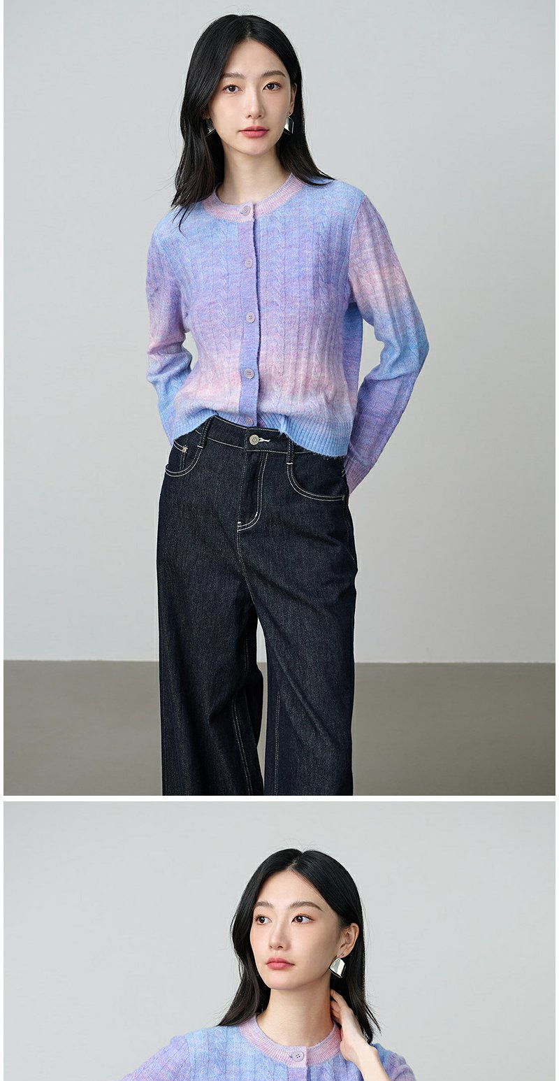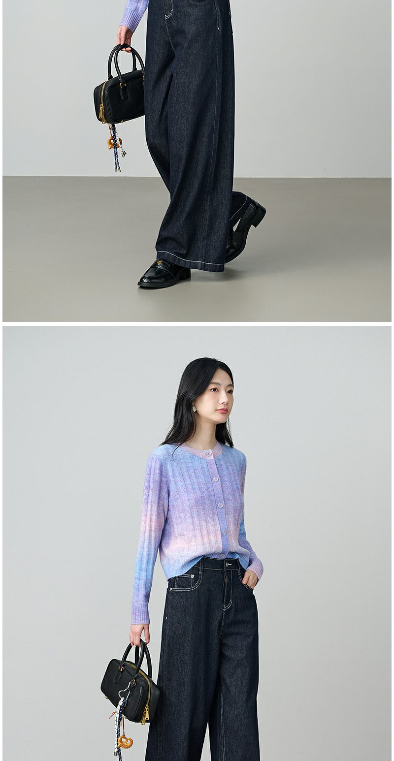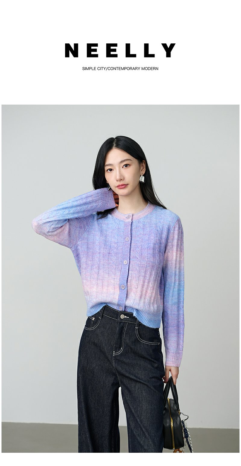 NEELLY纳俪商场同款秋季新款时尚渐变显白针织开衫女百搭休闲上衣N25084A04421