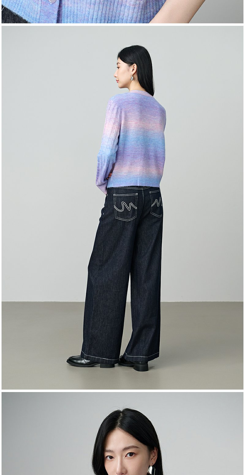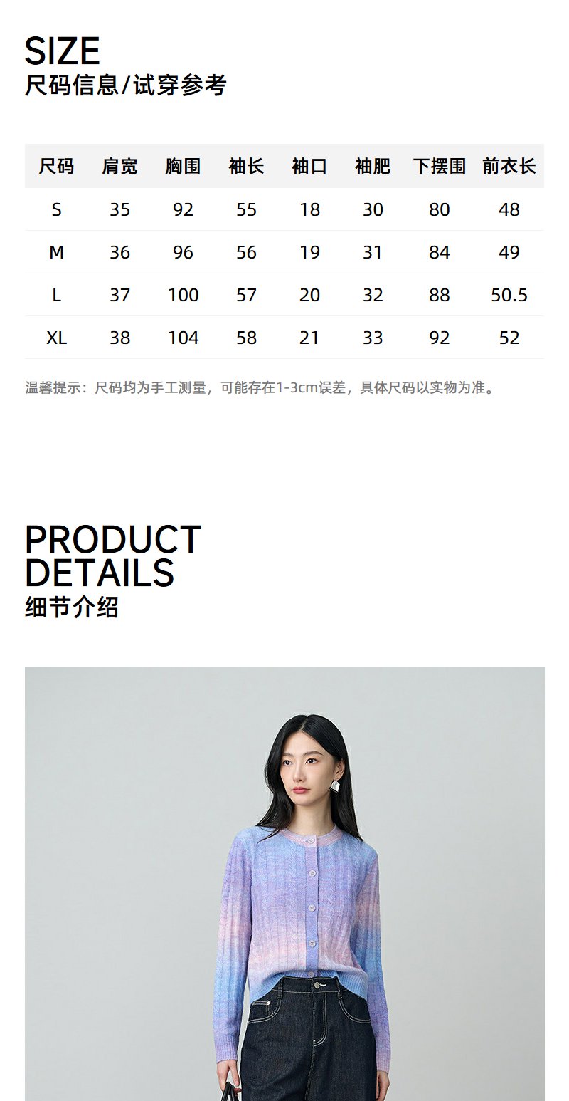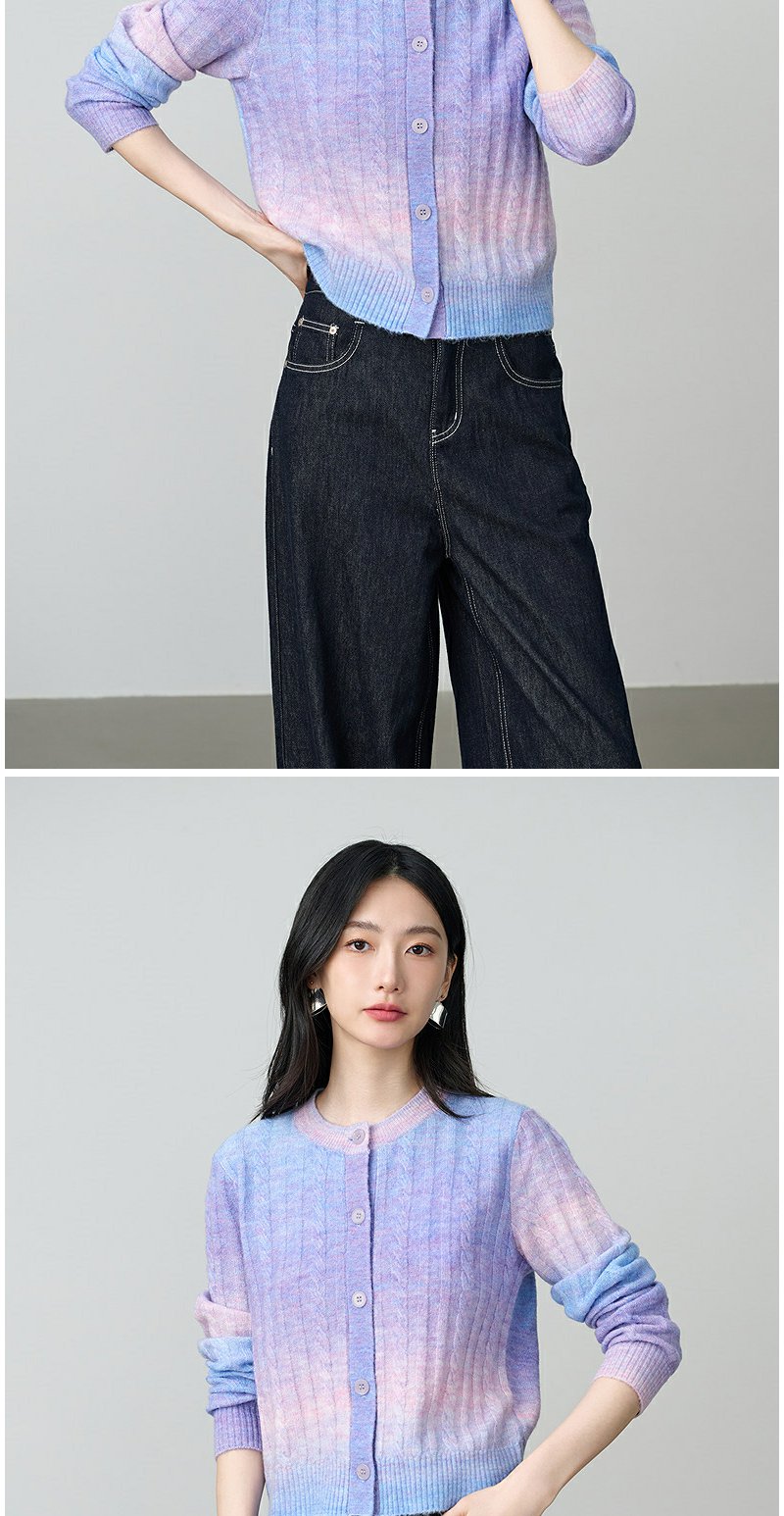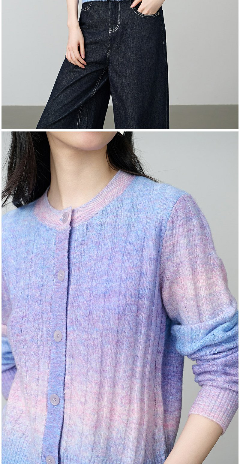 NEELLY纳俪商场同款秋季新款时尚渐变显白针织开衫女百搭休闲上衣N25084A04421