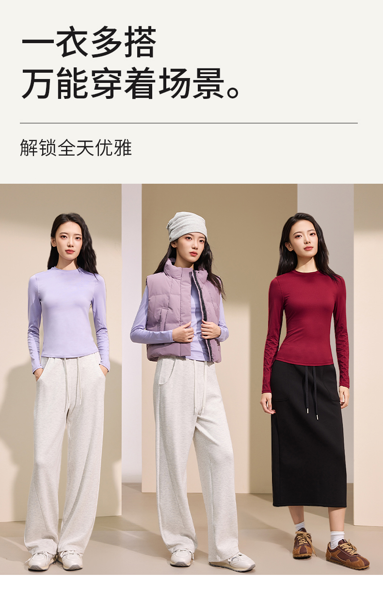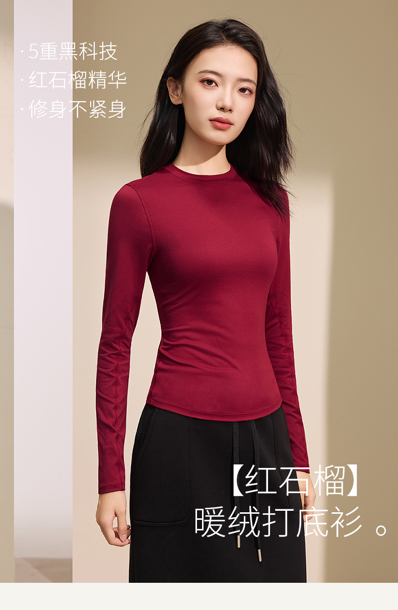 【润肤红石榴】爱帝女式超柔磨毛小圆领打底衫