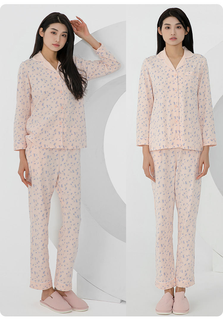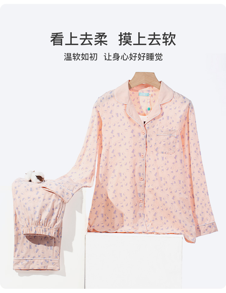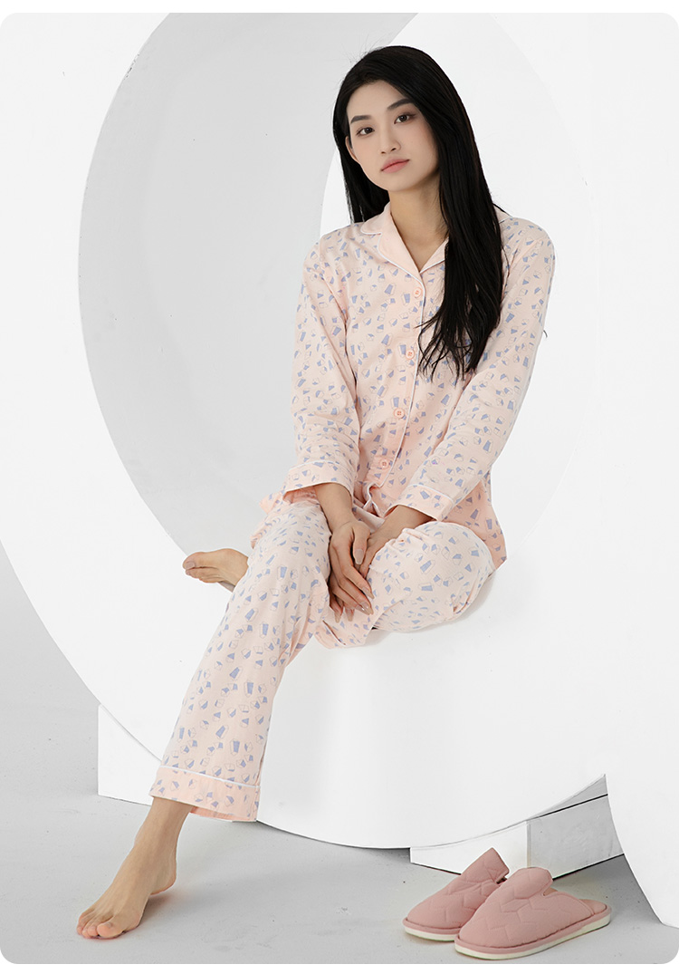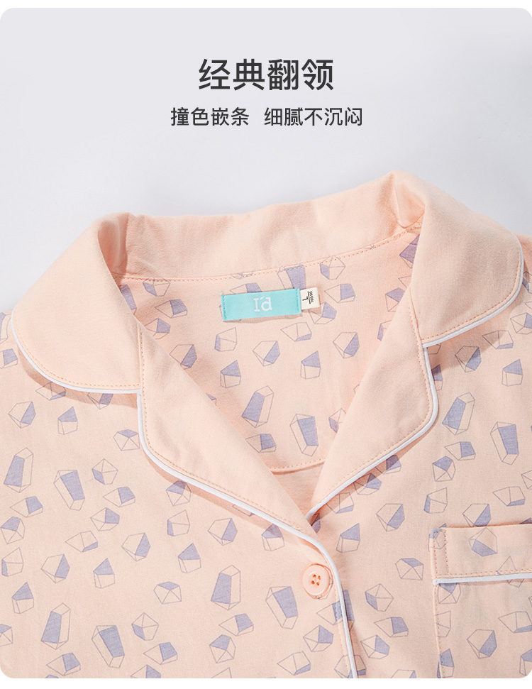 爱帝女士纯棉长袖睡衣菱形印花家居服
