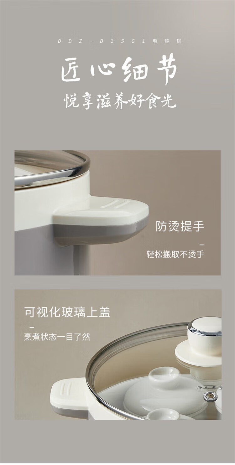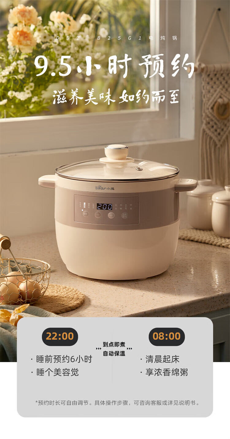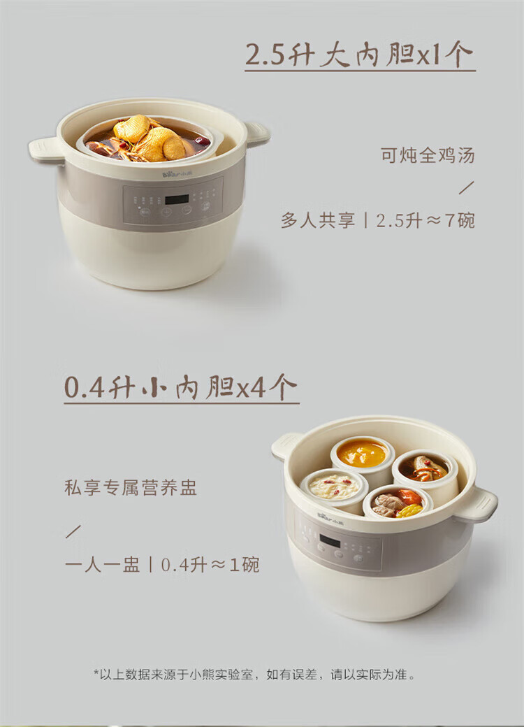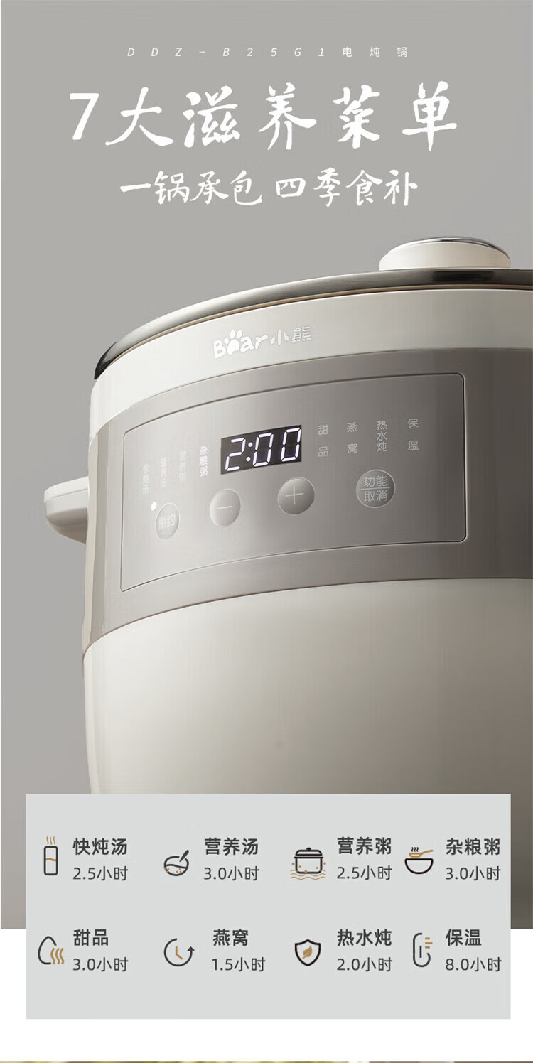小熊婴儿辅食锅 电炖锅 燕窝炖盅 宝宝辅食bb煲煮粥煲汤锅大容量可预约定时 DDZ-B25Q3