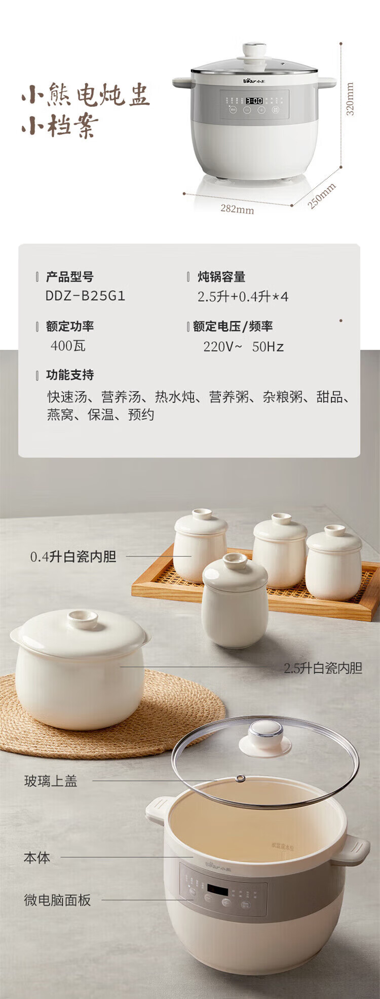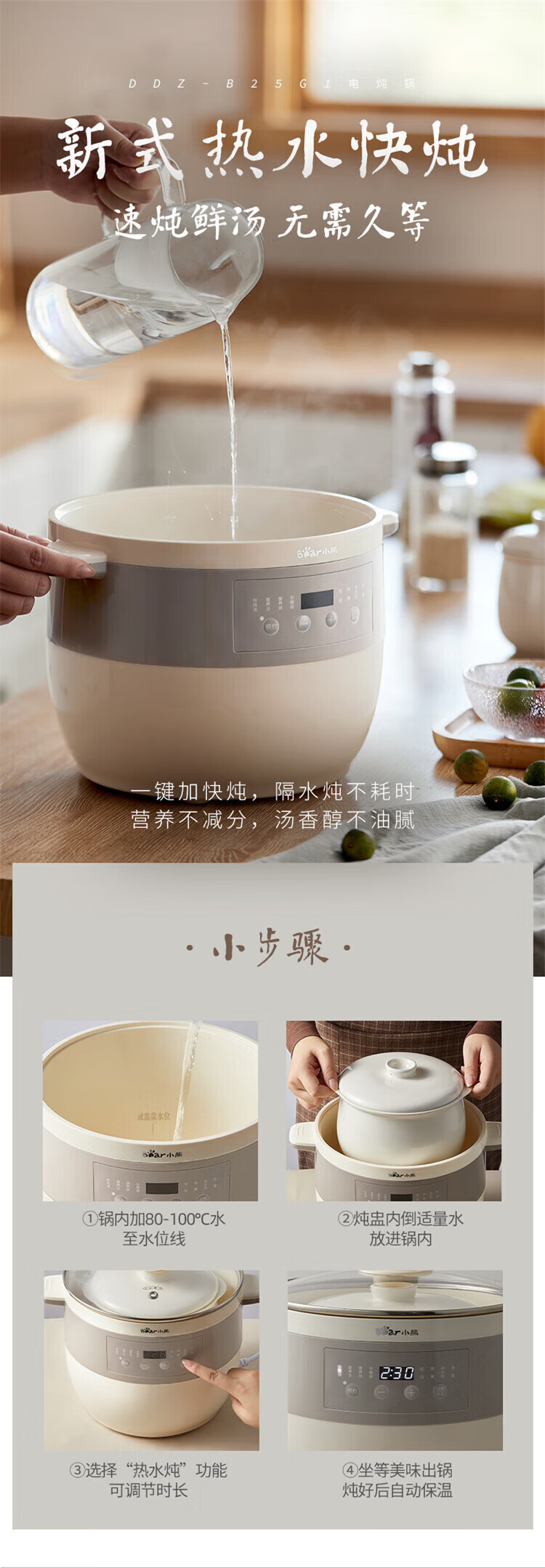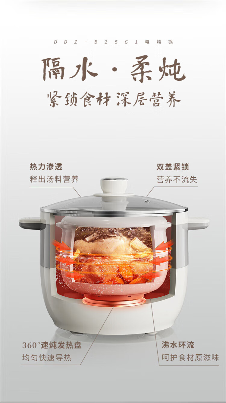 小熊婴儿辅食锅 电炖锅 燕窝炖盅 宝宝辅食bb煲煮粥煲汤锅大容量可预约定时 DDZ-B25Q3