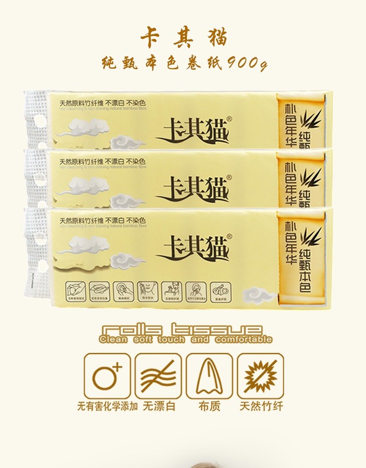 卡其猫纯甄本色卷纸900g