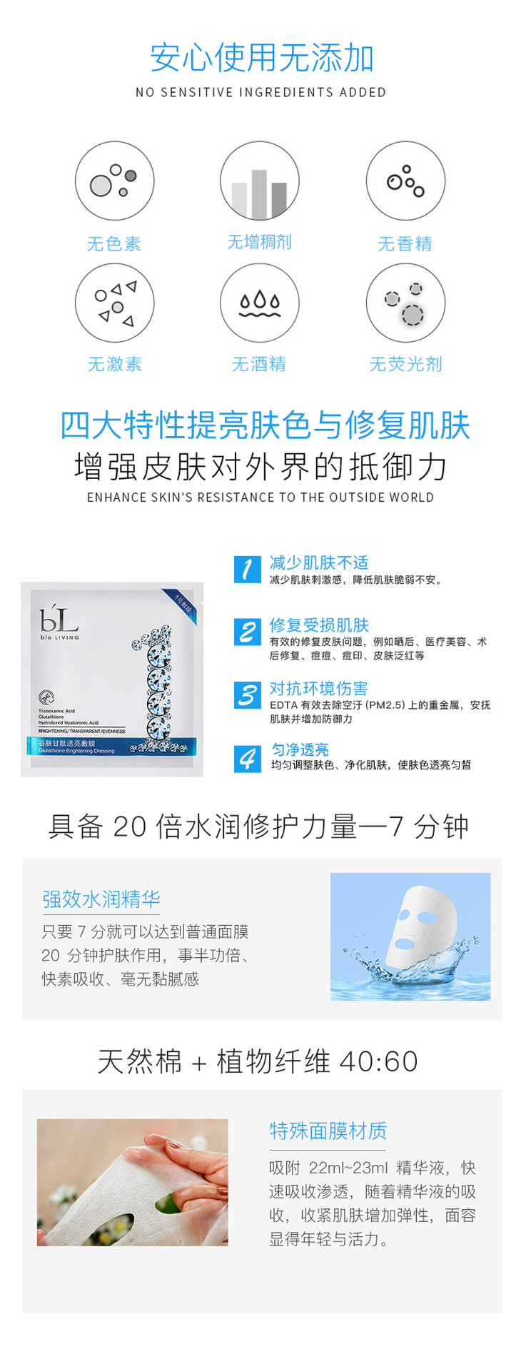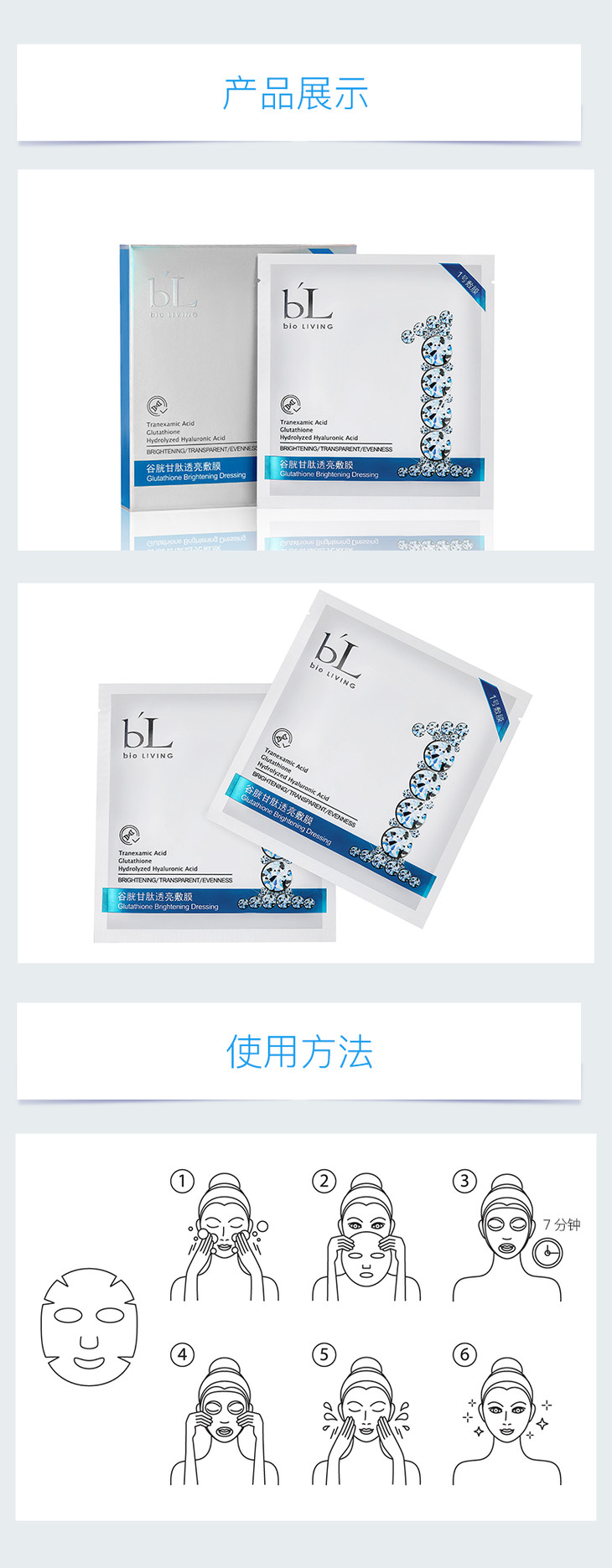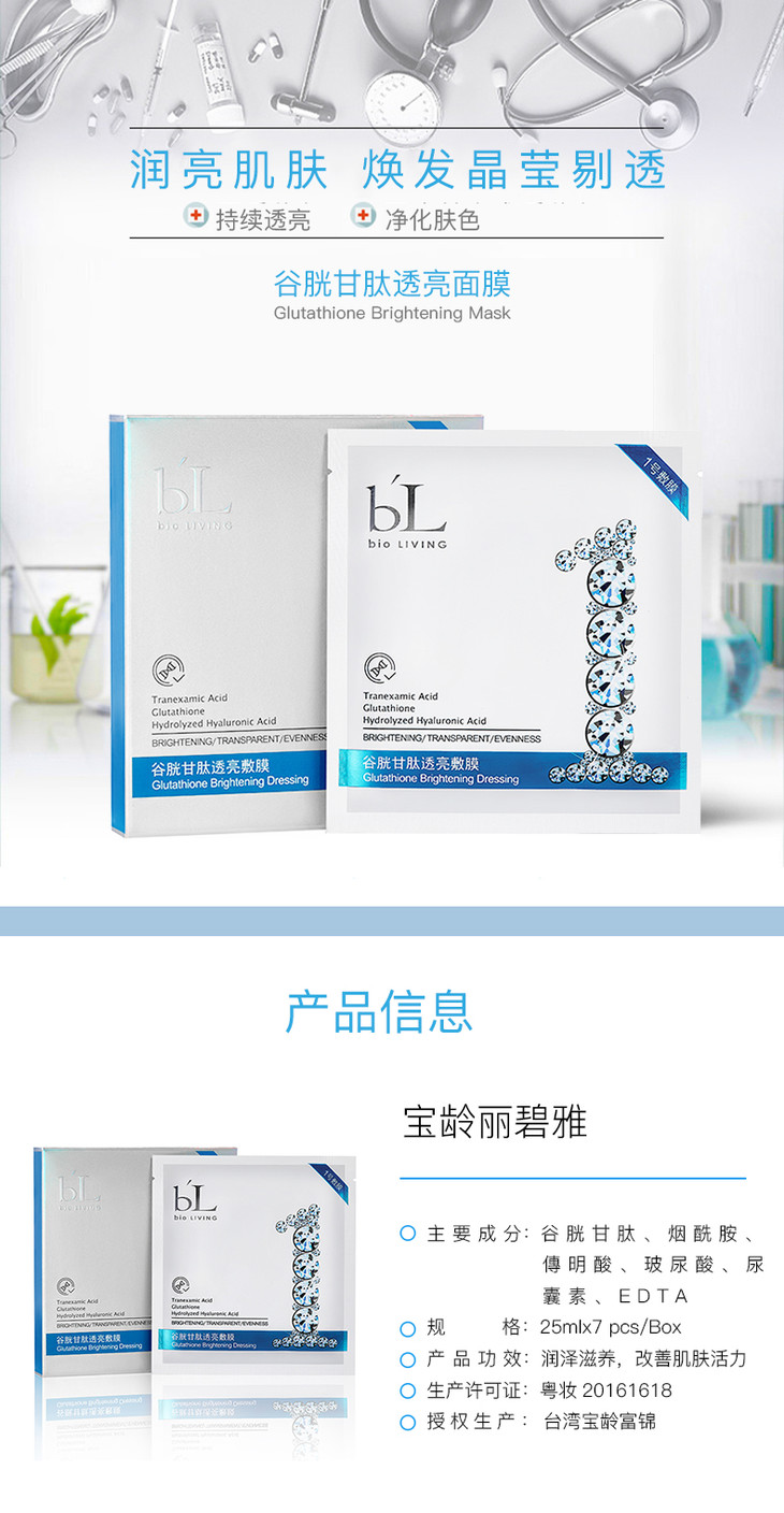 【宝龄】谷胱甘肽透亮面膜女补水保湿烟酰胺提亮收缩毛孔7片