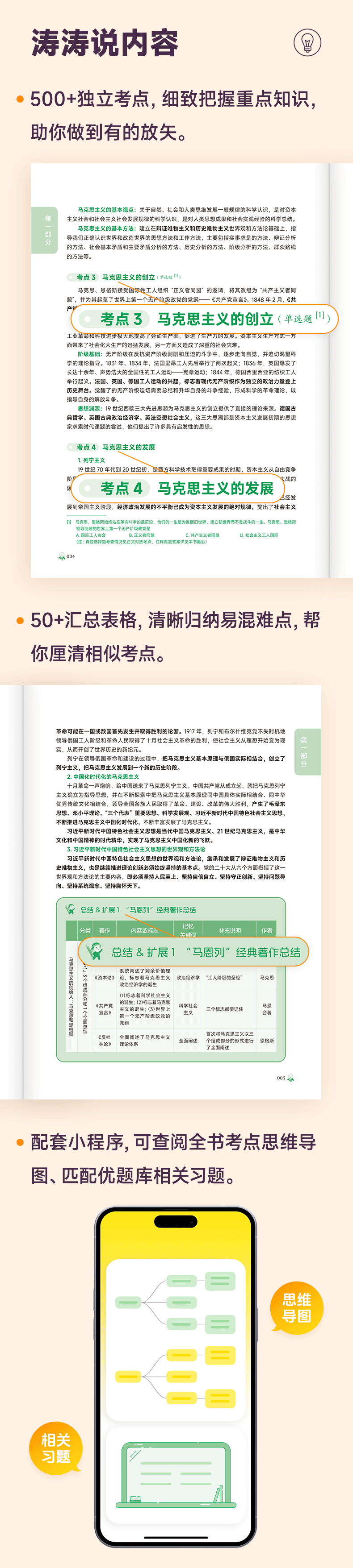 本书是在《全国硕士研究生招生考试思想政治理论考试大纲》的基础上,井参考中国共产党近几年召开的重要会议的近期新内容精心编写而成,具有很强的指导性。本书具有教材的性质,并对考纲进行了考点化处理以及重点段落和重要考点进行了加色处理,方便考生复习,使考生达到事半功倍的效果。本书还在相应的知识点处,直接附以“真题”再现,使考生在了解考点的前提下更能够灵活运用其应对考试题目。总之,本书是考生在政治复习过程中不可或缺的推荐辅导用书。