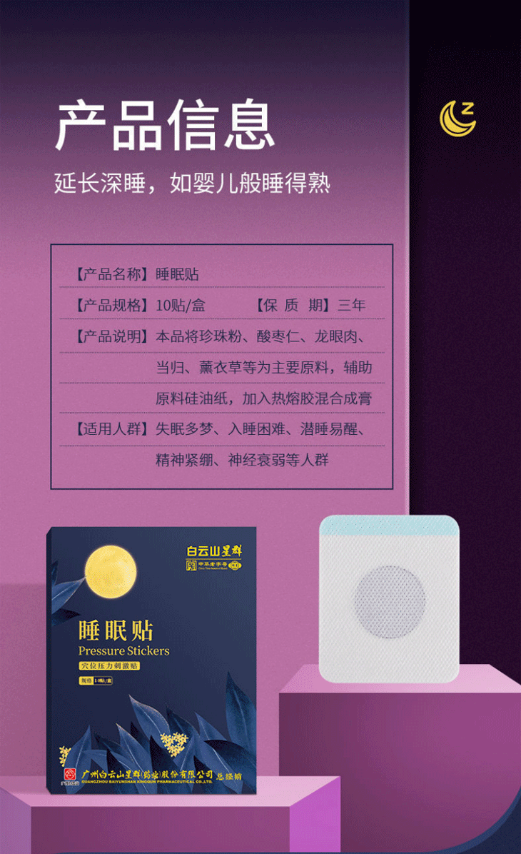 睡眠贴 广药白云山睡眠贴不做守夜人家用舒眠贴