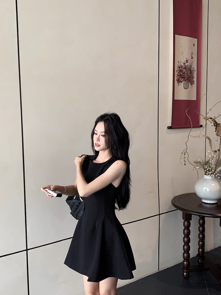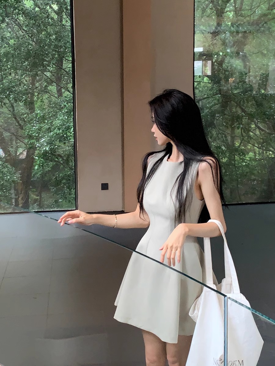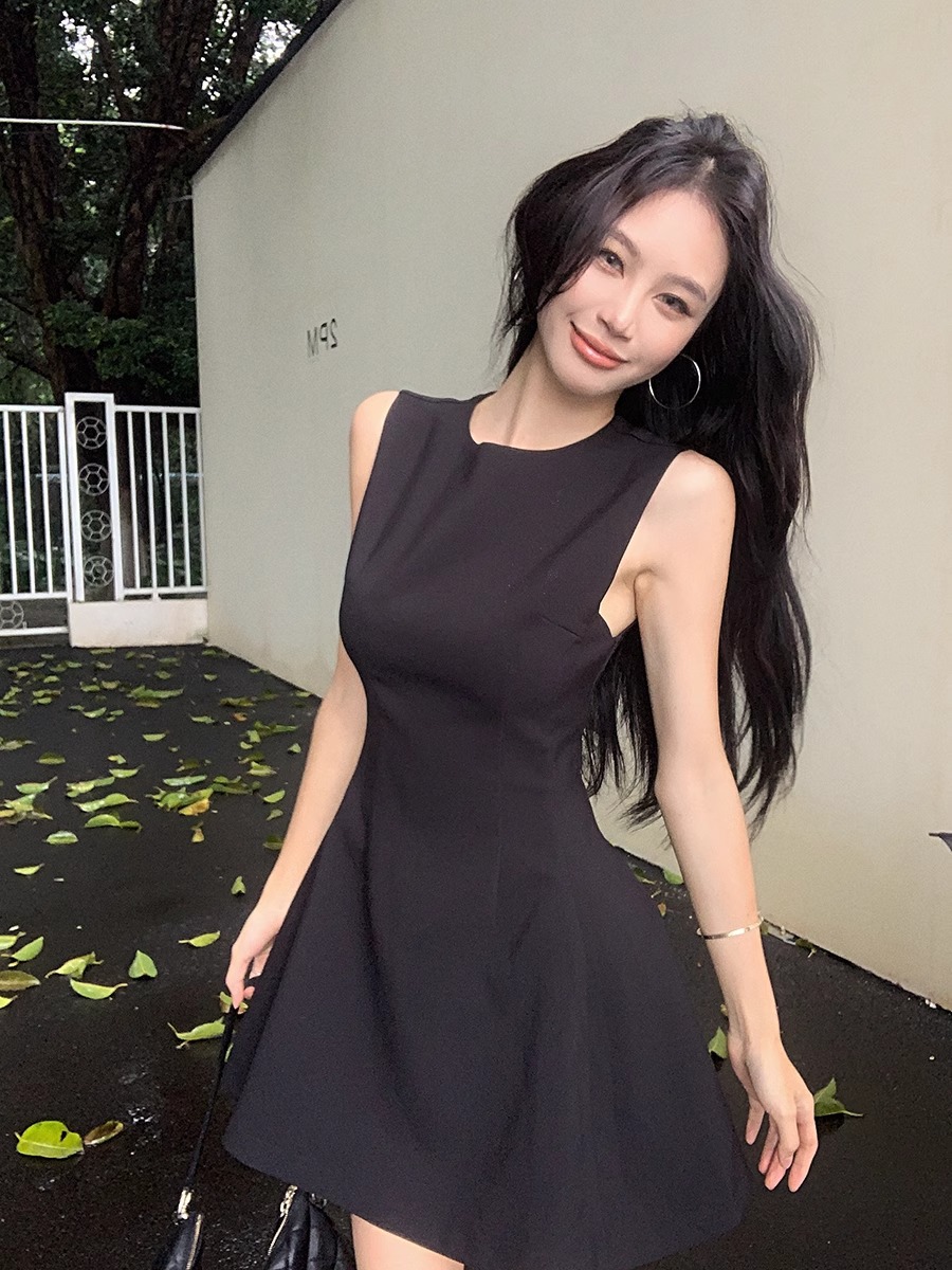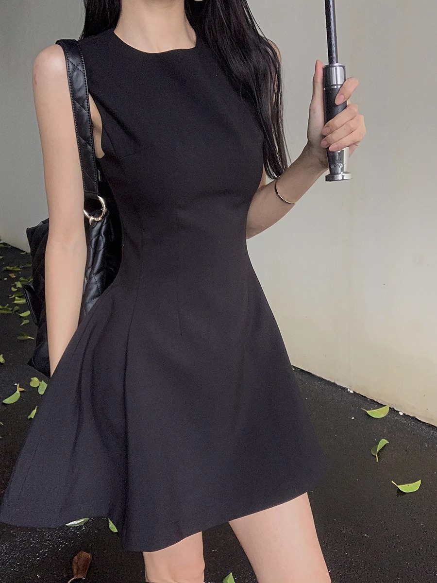 夏季新款【小个子甜美短裙】收腰显瘦 设计感纯色无袖背心气质连衣裙  商品图1