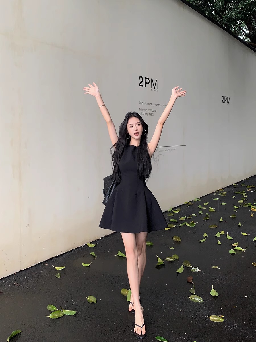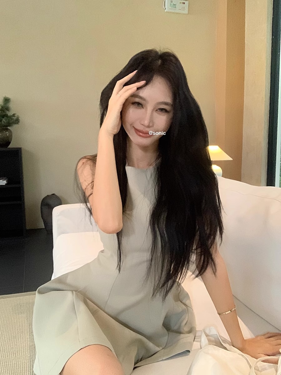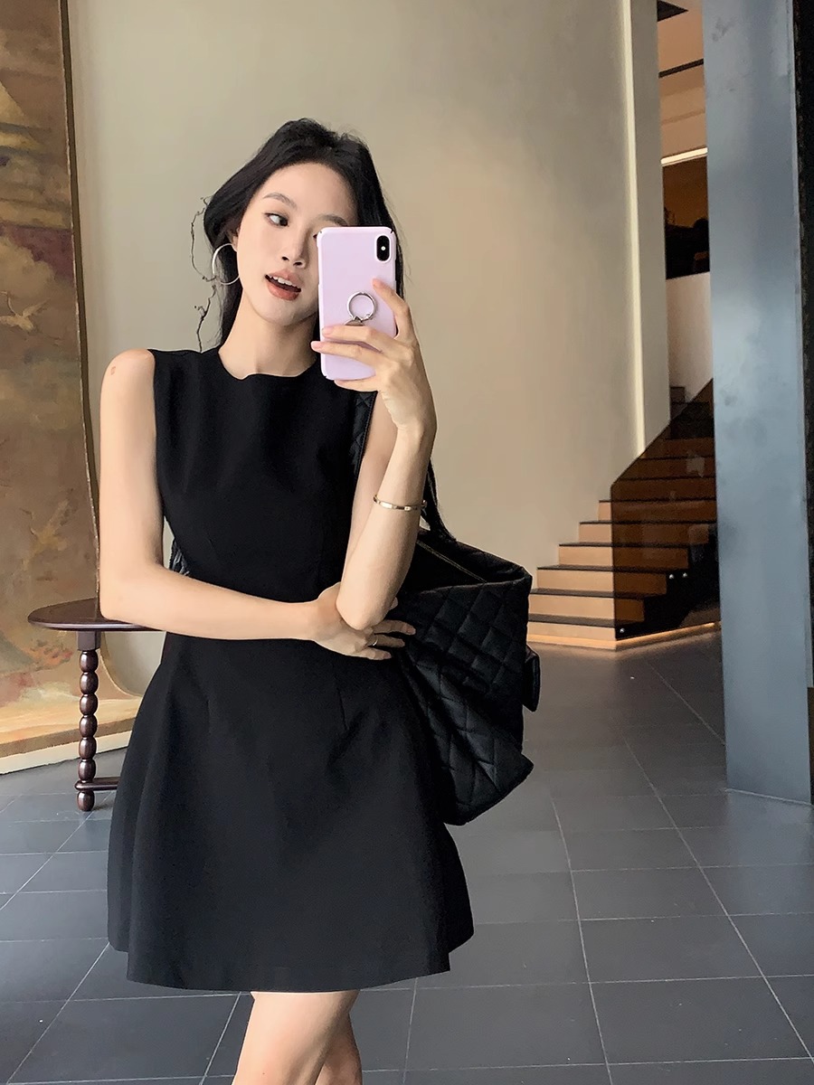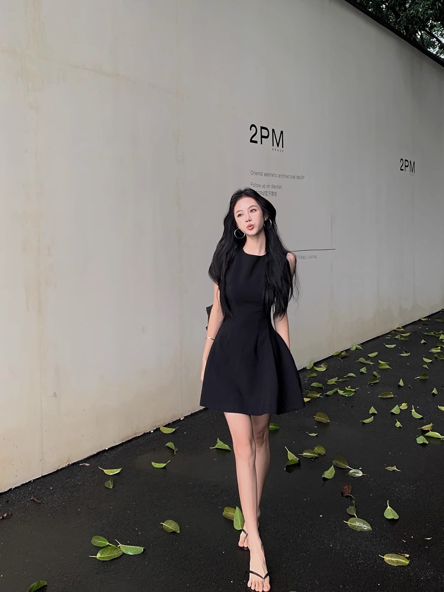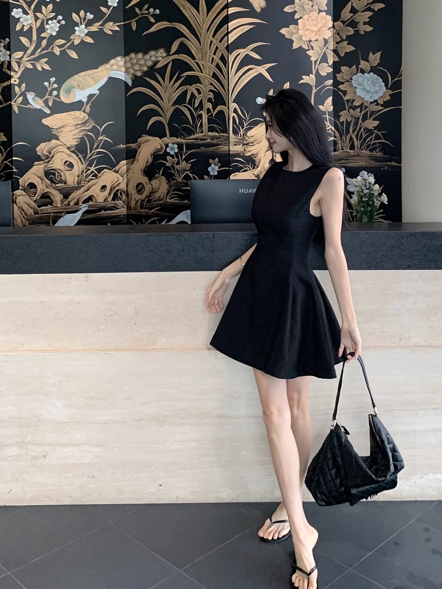 夏季新款【小个子甜美短裙】收腰显瘦 设计感纯色无袖背心气质连衣裙  商品图1