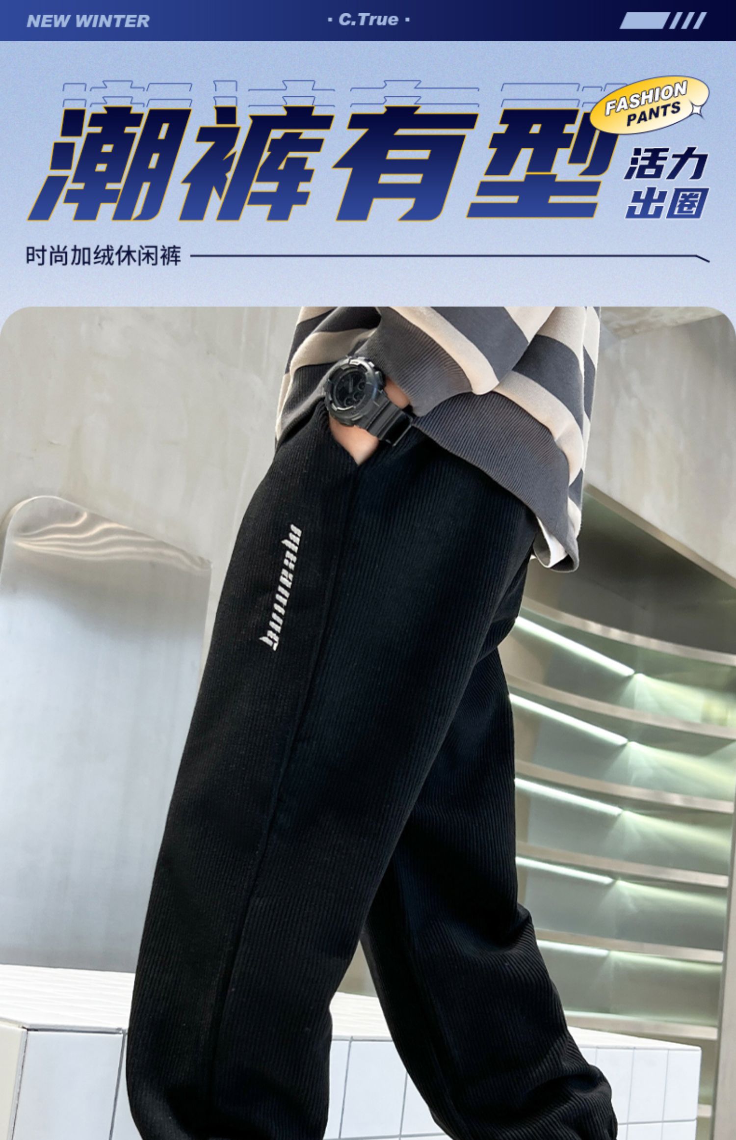 女童加绒加厚运动裤冬季卫裤女孩裤子秋冬款休闲裤女大童棉裤冬装