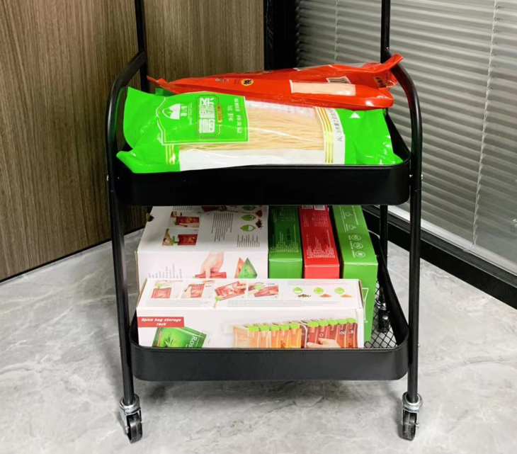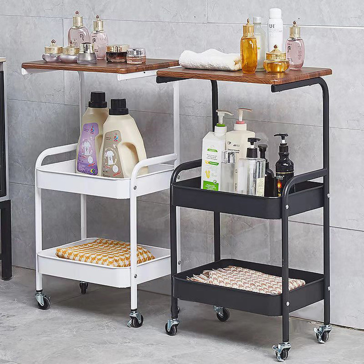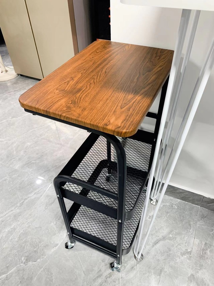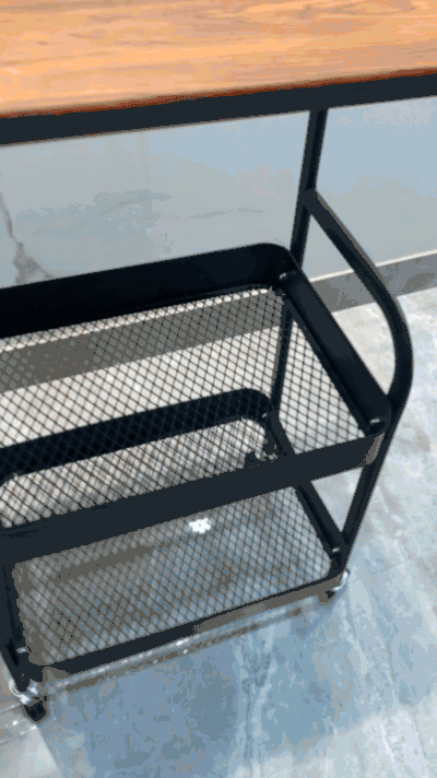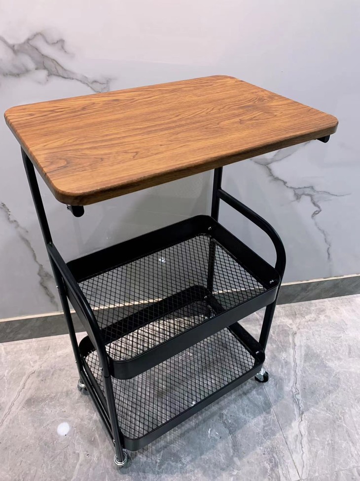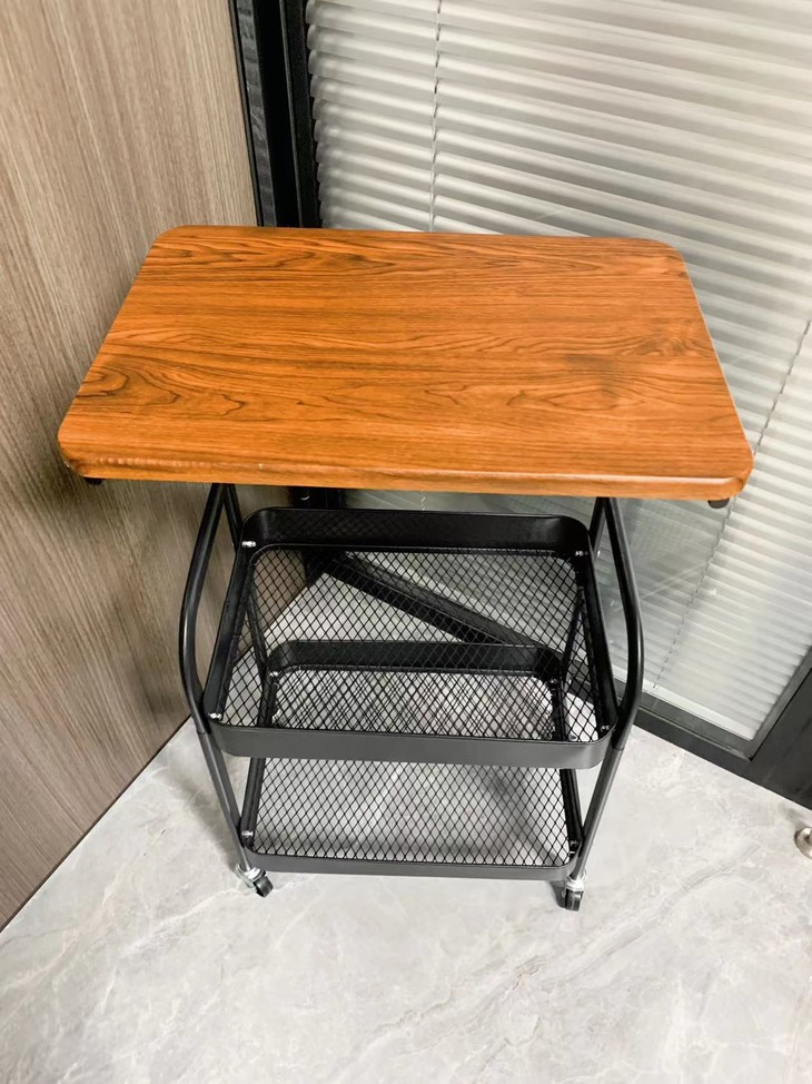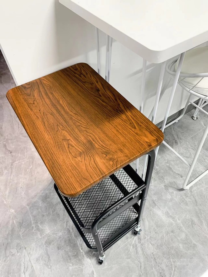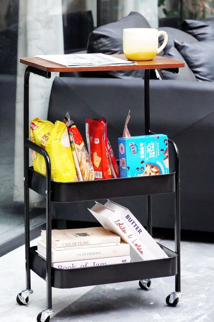 wind这款多层推车置物架 双层大容量置物筐 + 防水耐磨的胡桃木色桌面板 半空支架设计✔ 🔹万向滚轮 | 🔹沥水网篮 🔹碳钢材质 | 🔹顶层桌板 容量够大✔ 承重够强✔ 耐磨耐热✔ 平板好放置✔