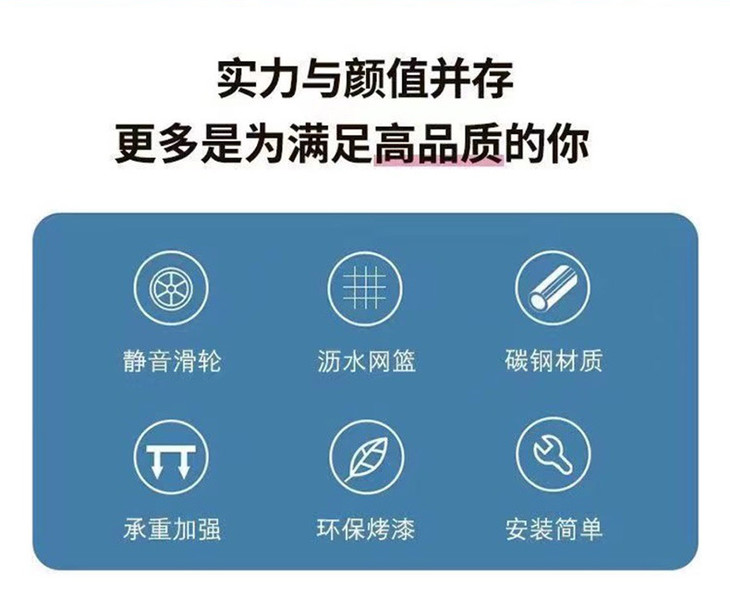 ✔金属框架网篮为不易生锈的碳钢材质 加上环保烤漆 承重力更强 质感更好 颜值也更高 优质碳钢+抛光技术+防锈涂层+高温烤漆 整整四层的精湛工艺 带来更舒适的触感、更优秀的实用性 和更长久的使用寿命