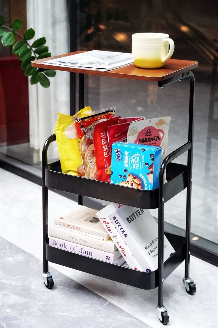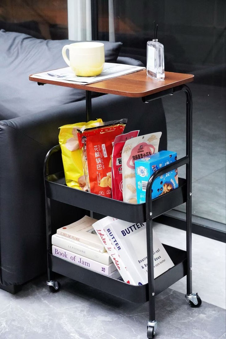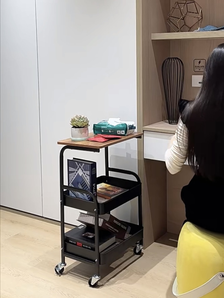 如果将推车置物架和边几结合起来呢? 效率+便捷实用性 完全是1+1>2的效果 其实就相当于一款更加简易 更加平价的床头柜↓↓↓
