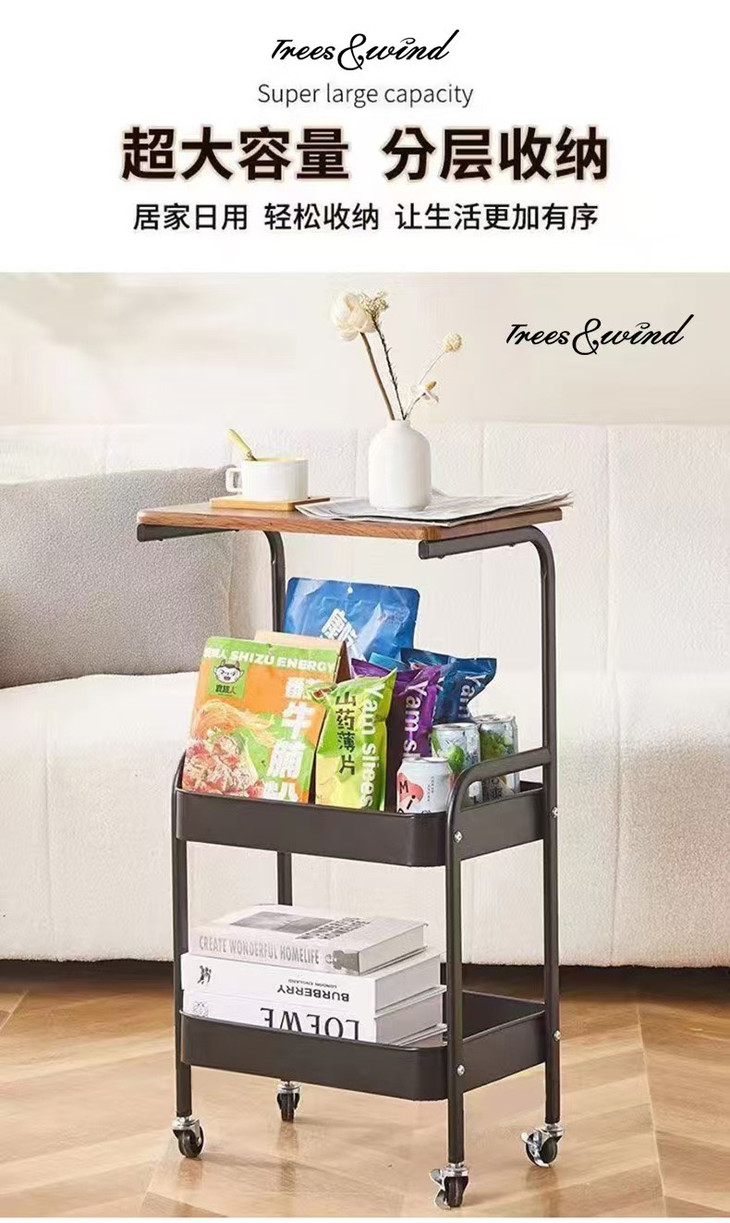 💥超级节省空间,一车都搞定!🛒收纳推车 | 沙发边几的组合款😘——【Trees&wind移动手推车置物架】👉🏻多场景适用的居家生活归置好物,轻松承重50斤!