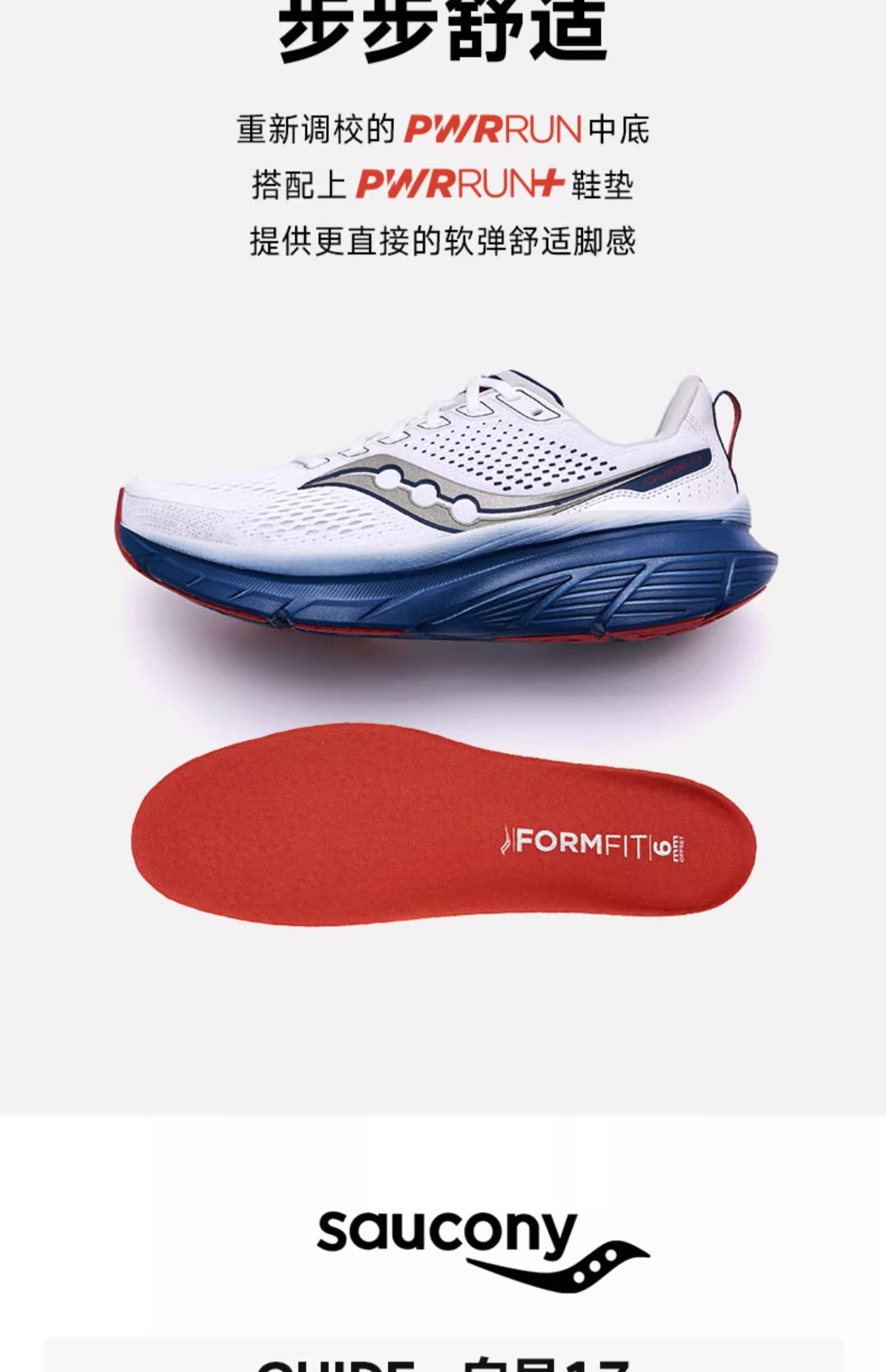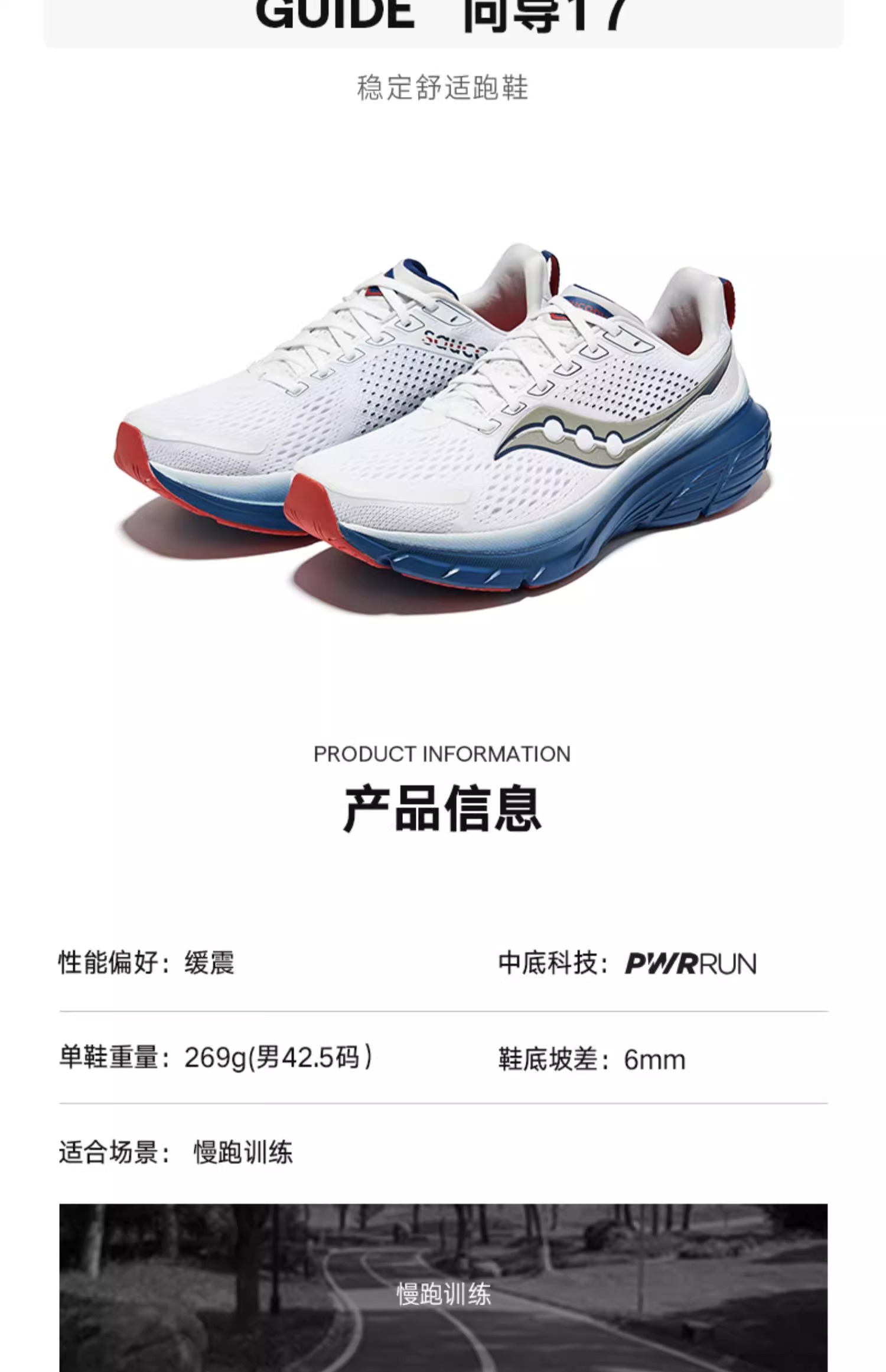 Saucony索康尼GUIDE向导17男女款跑鞋稳定支撑情侣舒适缓震跑步鞋