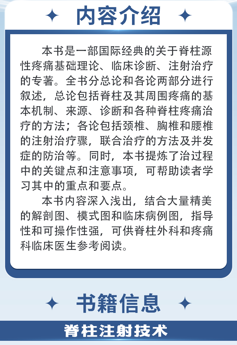 脊柱注射技术 吴晓东 等译 疼痛注射脊柱注射注射治疗骨科脊柱外科 供脊柱外科和疼痛科临床医生 上海科学技术出版社9787547860694