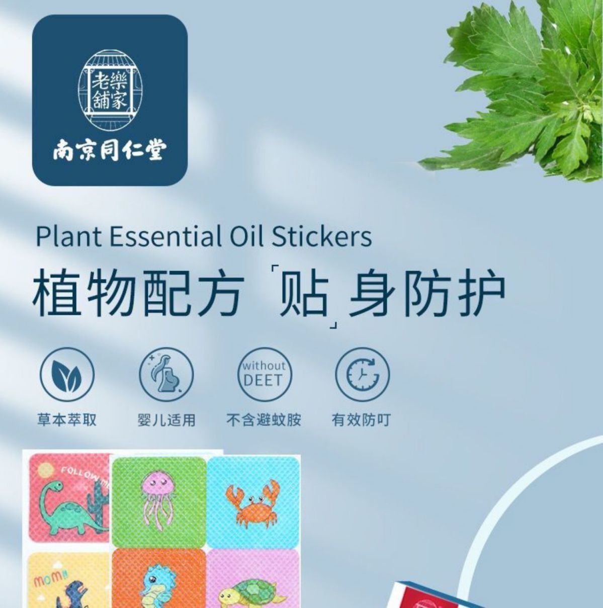 买一送一!【植物配方 贴身防护】南京同仁堂驱蚊贴24贴/盒,草本植物精油更放心!婴儿贴身叮叮,长效呵护12小时,宝宝的隐形蚊帐,孕婴成人儿童适用。ry