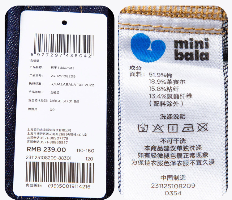 【软牛仔】迷你巴拉男女童裤子2025春新品棉感萝卜裤牛仔裤