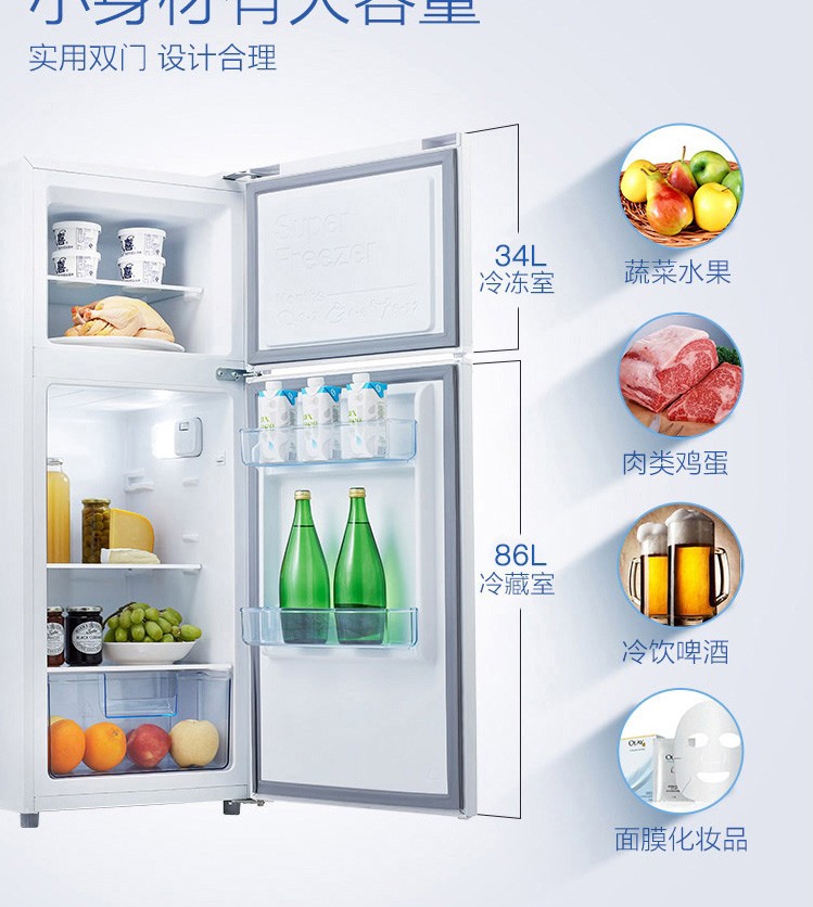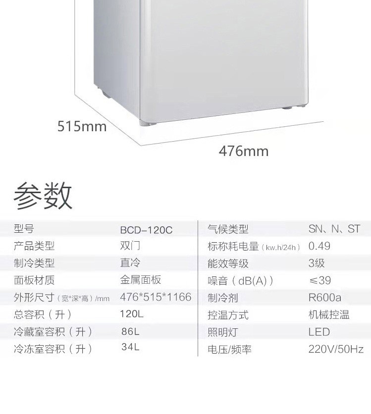 TCL 120升双门电冰箱 BCD-120C