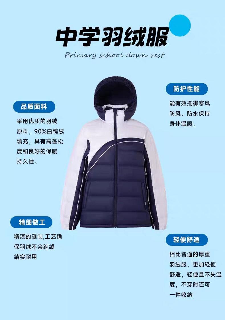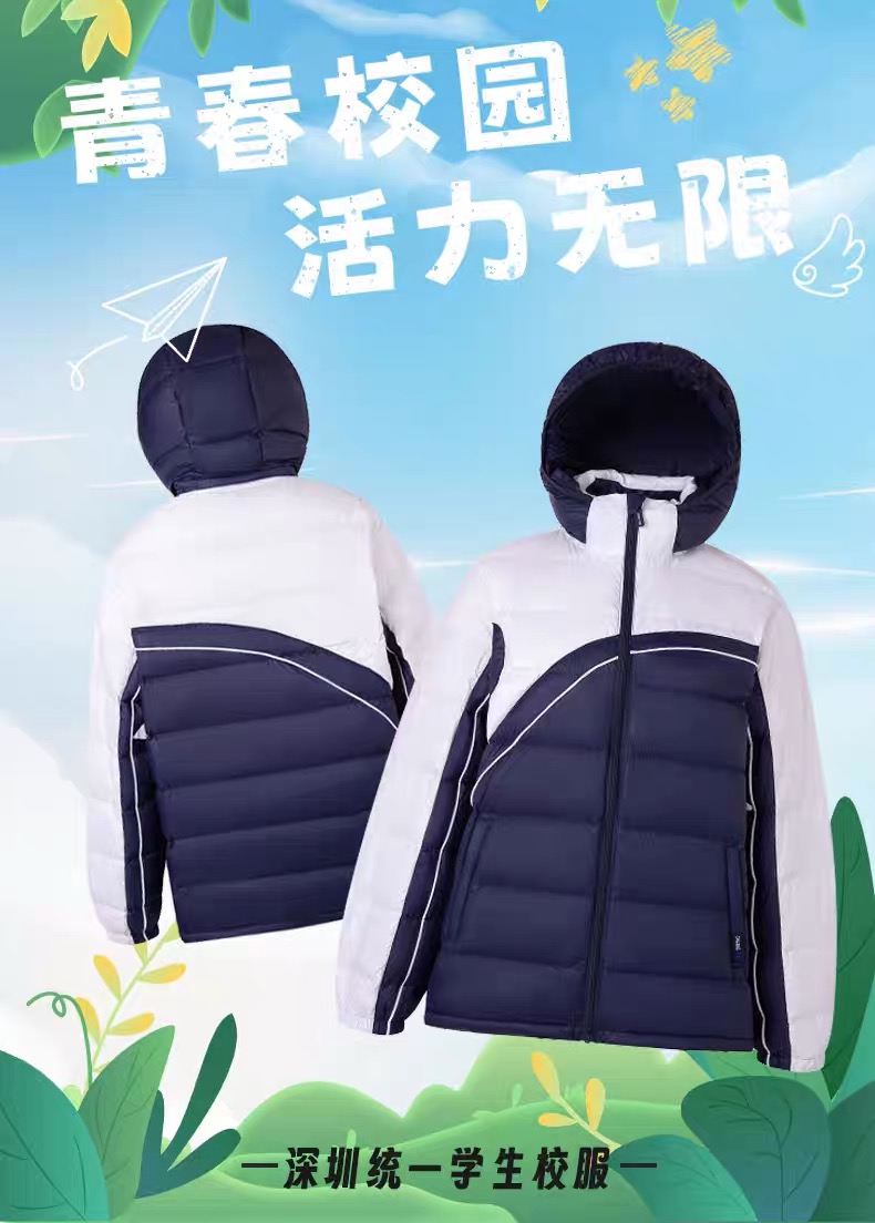 创童深圳校服中学生长袖羽绒服轻薄外套90白鸭绒连帽Teflon三防面料男女同款