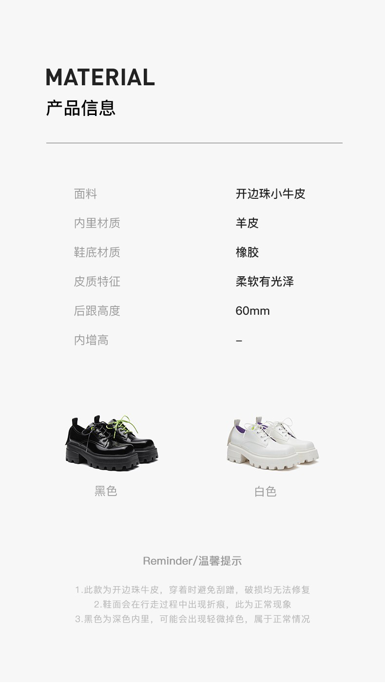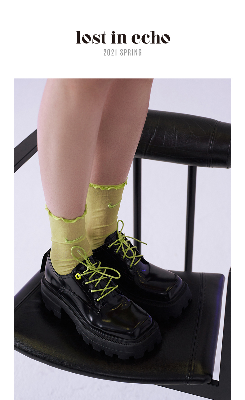 [捡漏价]lost in echo设计师款粗跟系带方圆头增高厚底德比鞋休闲百搭单鞋