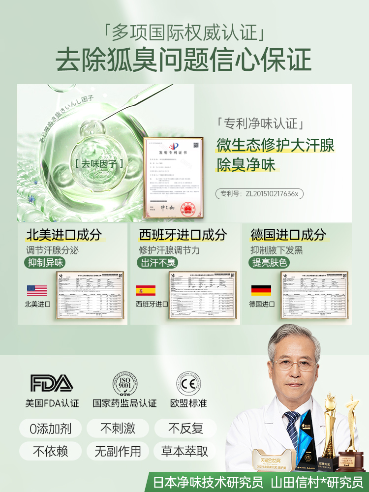 【第二瓶六折 专利净味】儒意去狐臭净味喷雾 水除臭腋下窝除异味持久喷雾儿童干爽止汗露狐味净