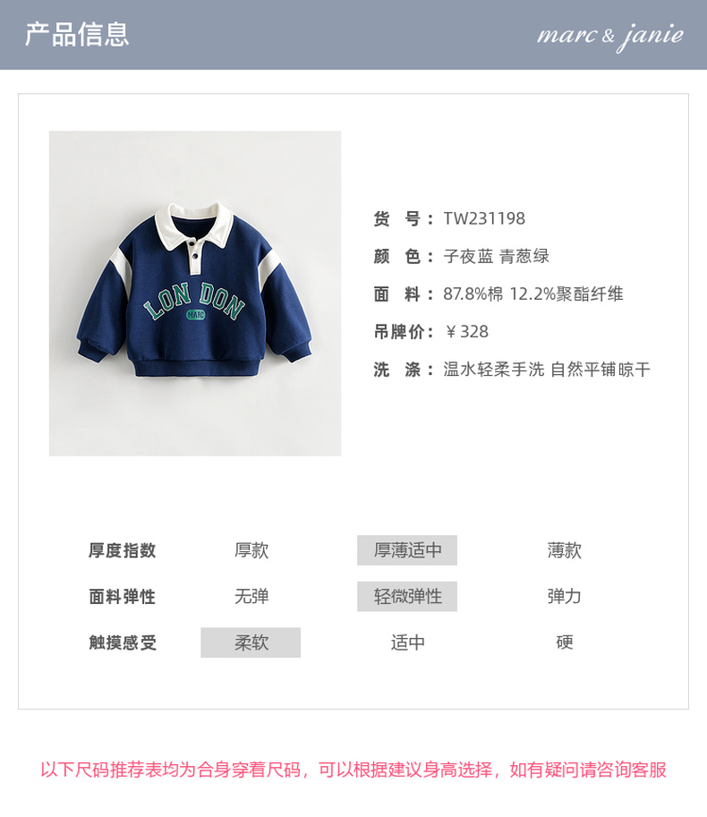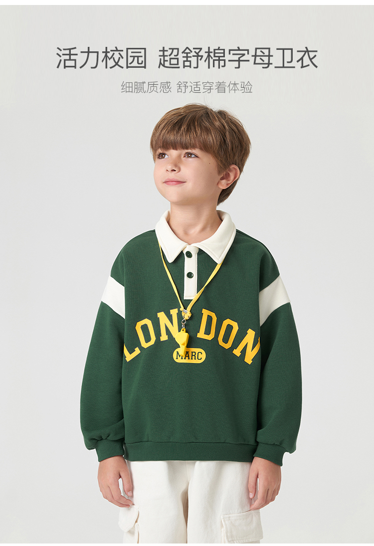 【学院风】马克珍妮秋装新款 男童polo领字母印花休闲卫衣231198