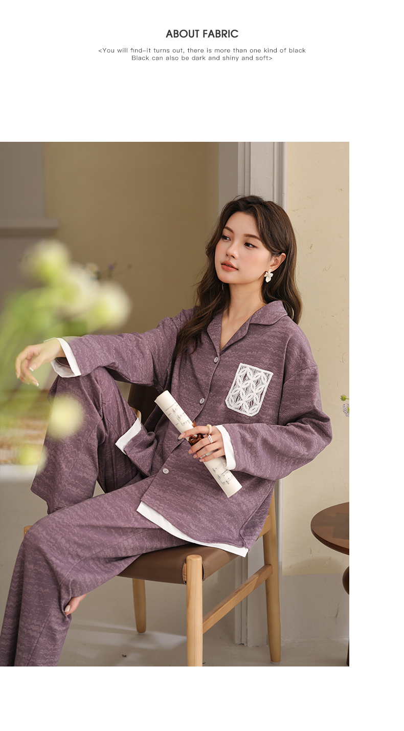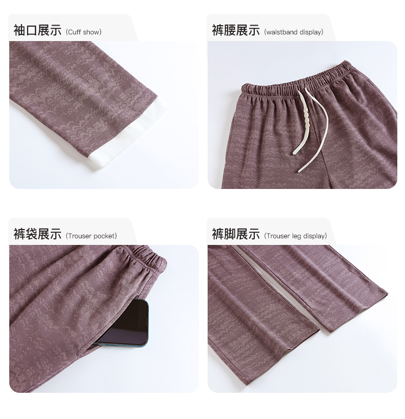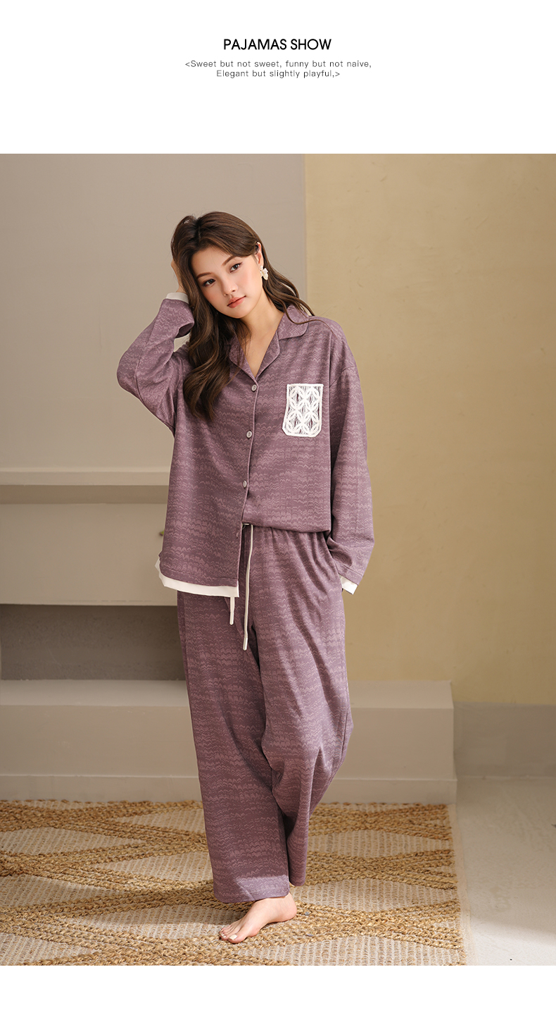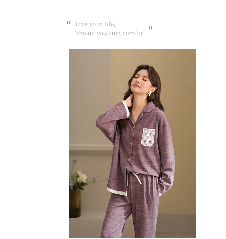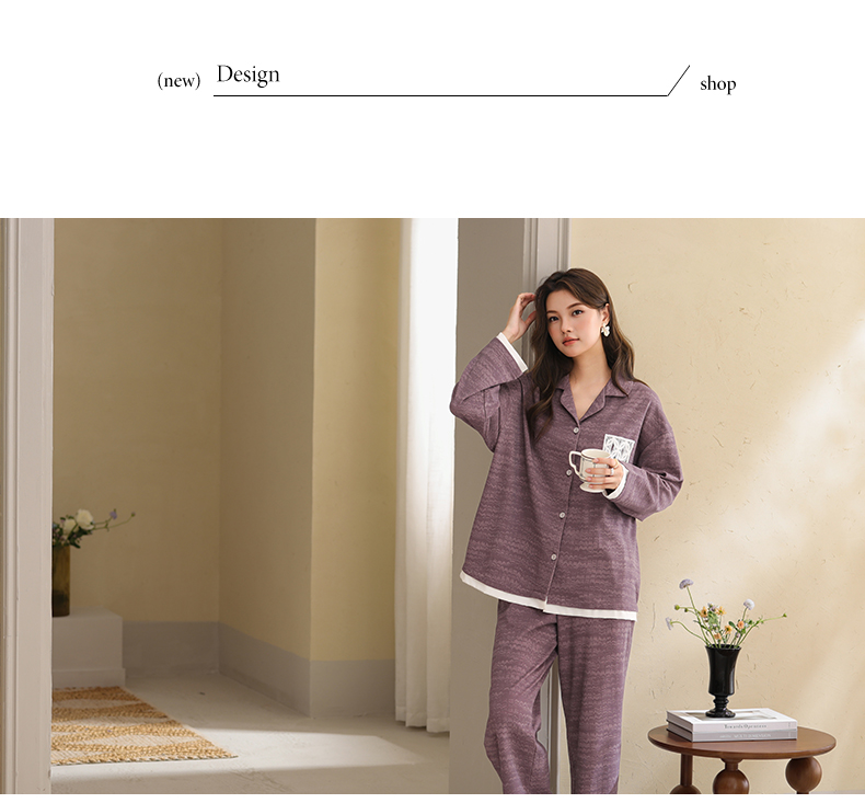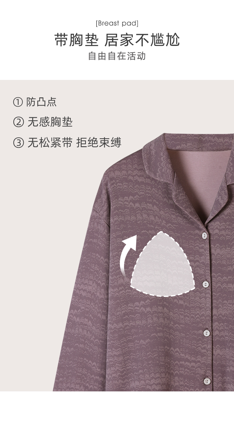可人儿春秋季带胸垫奥力棉女士长袖长裤睡衣可外出纯棉家居服套装