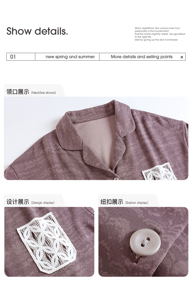 可人儿夏季纯棉提花睡衣女短袖长裤开衫大码夏天月子服家居服三件套装