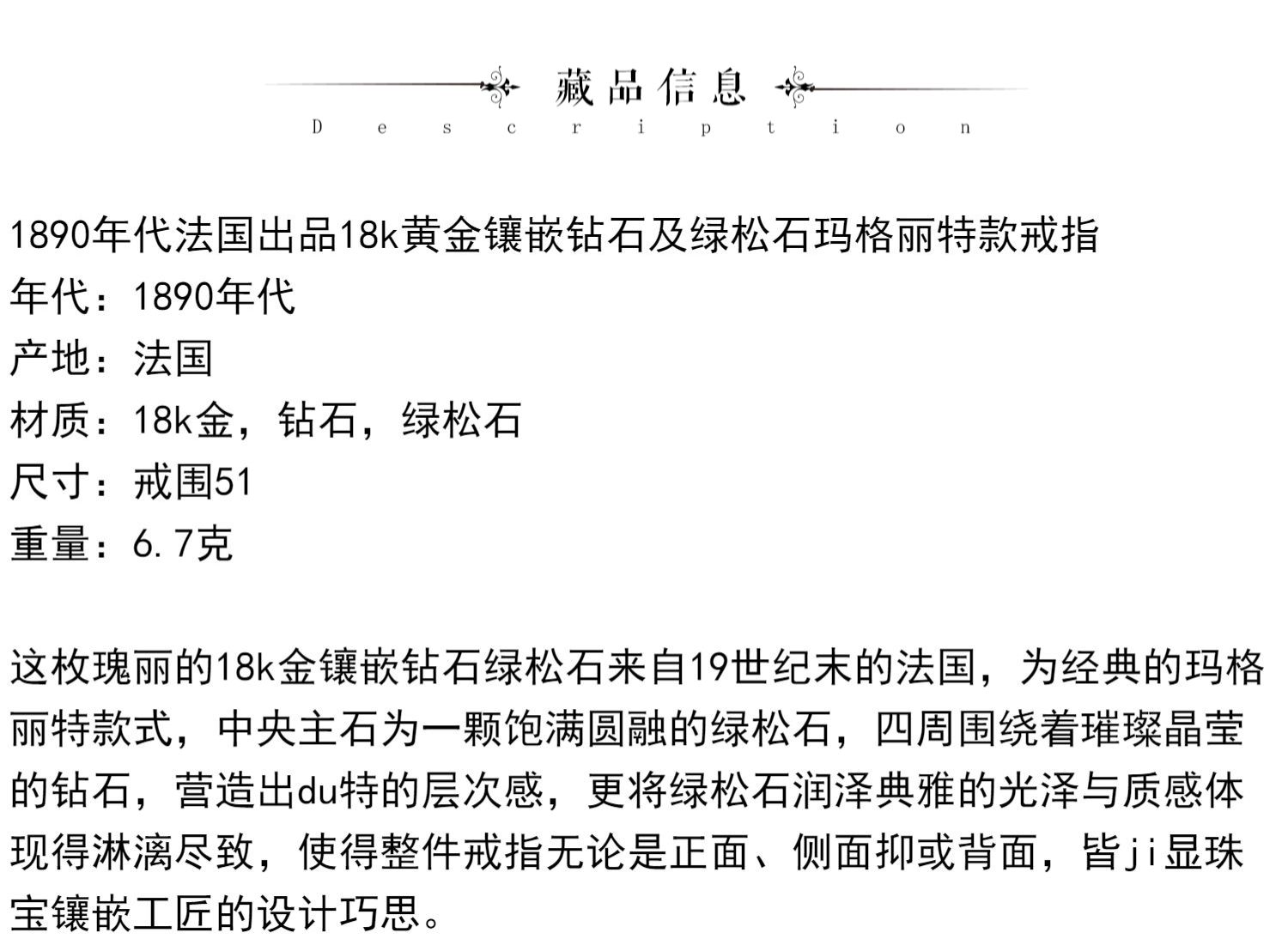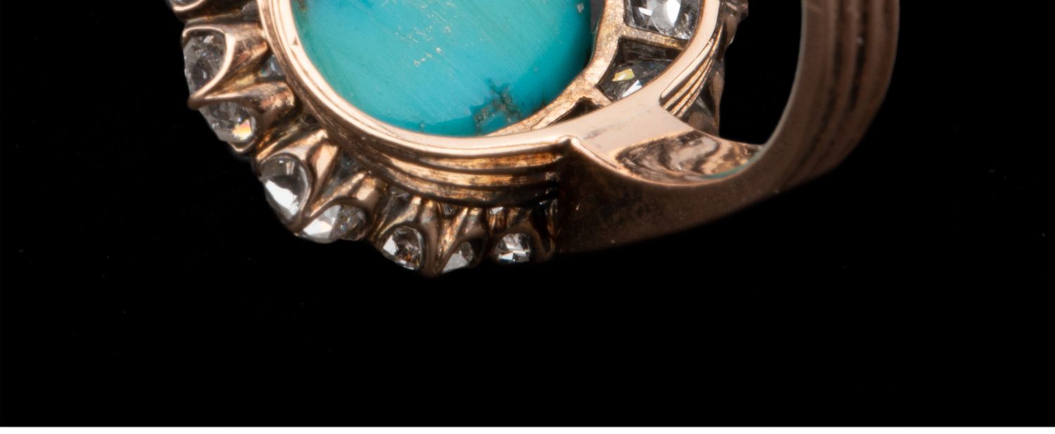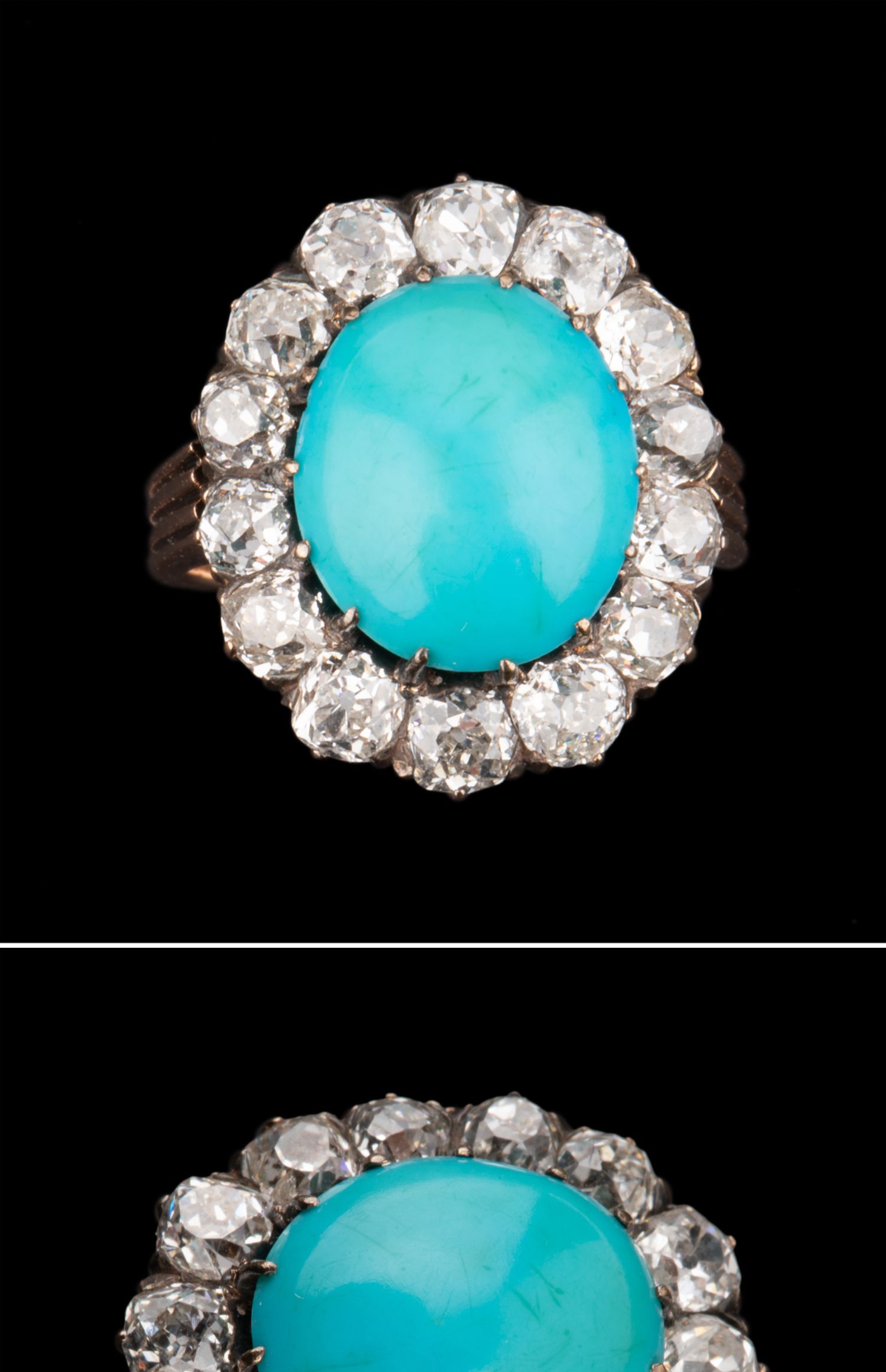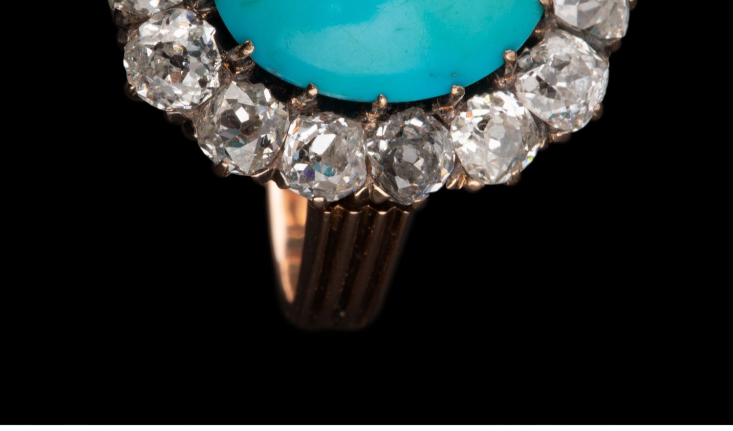 独角鹿西洋古董首饰法国18K黄金镶嵌钻石及绿松石玛格丽特款戒指