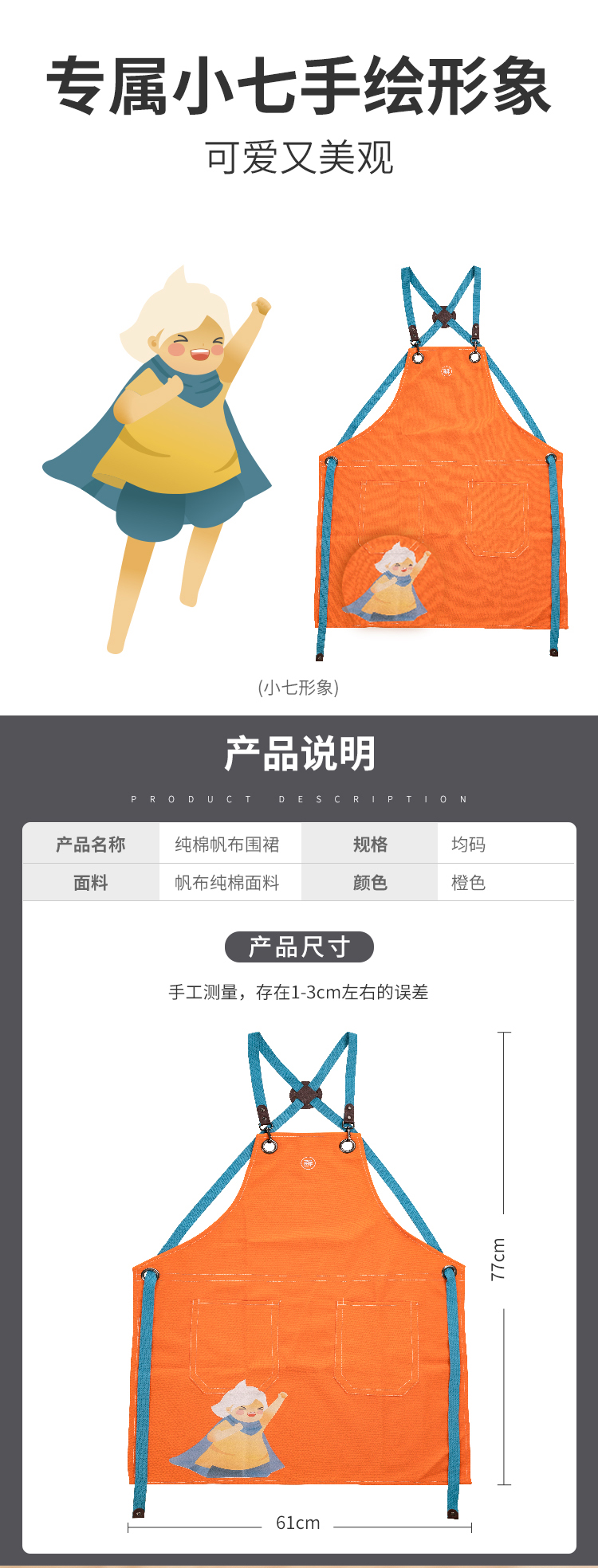 纯棉帆布围裙,厨房必备好帮手,柔软舒适,亲肤透气